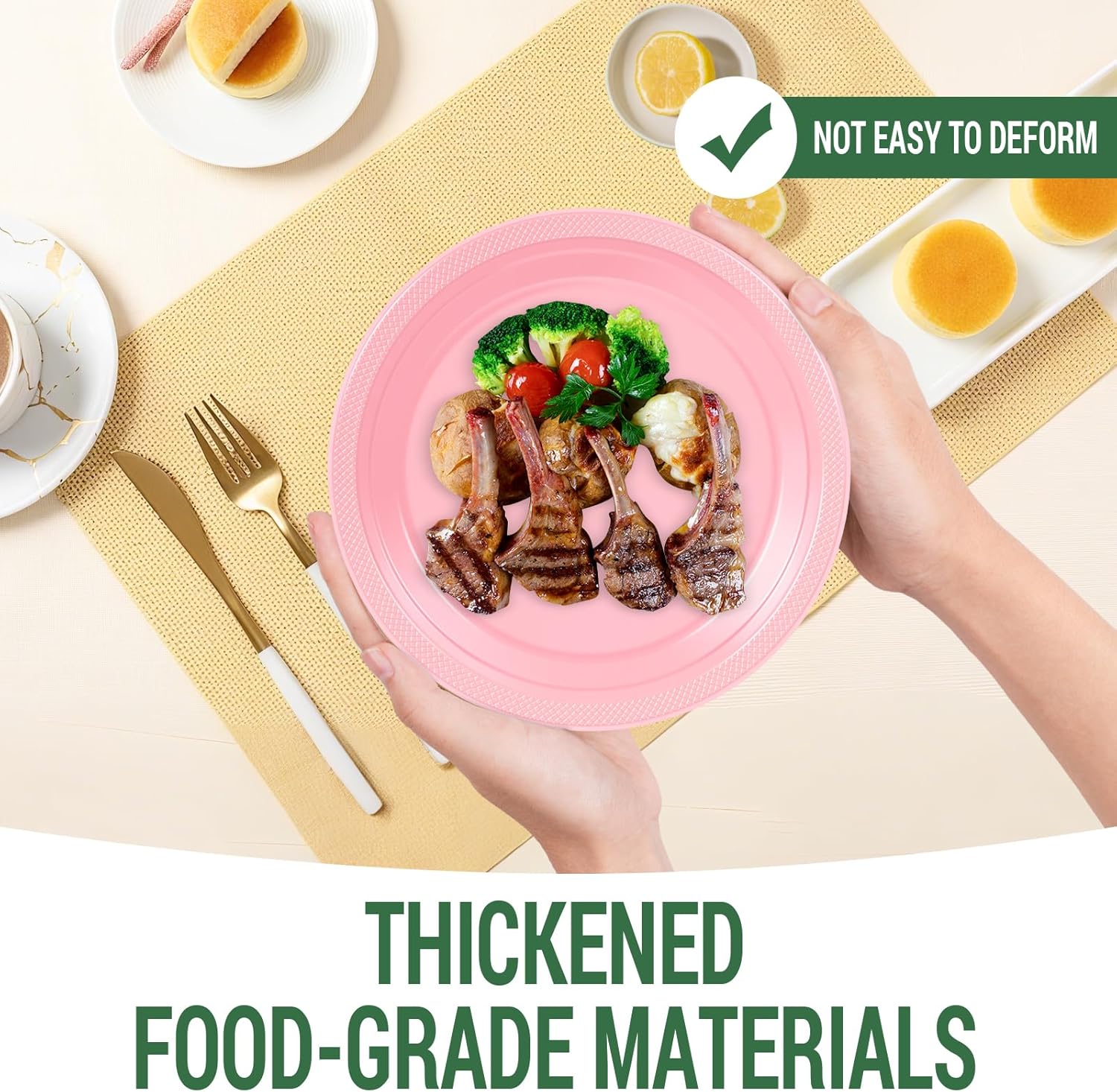 50 Pink Plastic Plates For Party, Includes 25-9" & 25-7" Cake Dessert Plastic Dinner Plates Disposable For Party Supplies