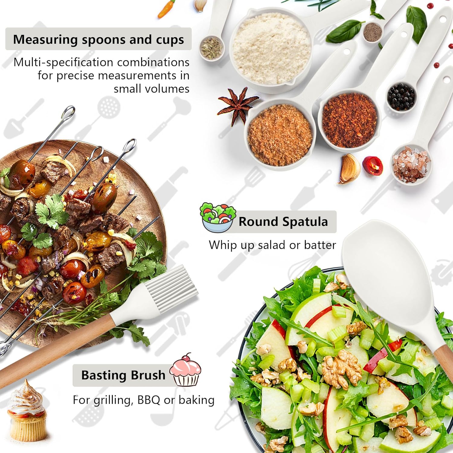 HaWare Kitchen Cooking Utensils Set, 23-Piece Silicone Kitchen Utensils Spatula Set with Holder, Heat Resistant Wooden Handle Kitchen Gadget for Nonstick Cookware, Food-grade Turner Spoon Sets (White)