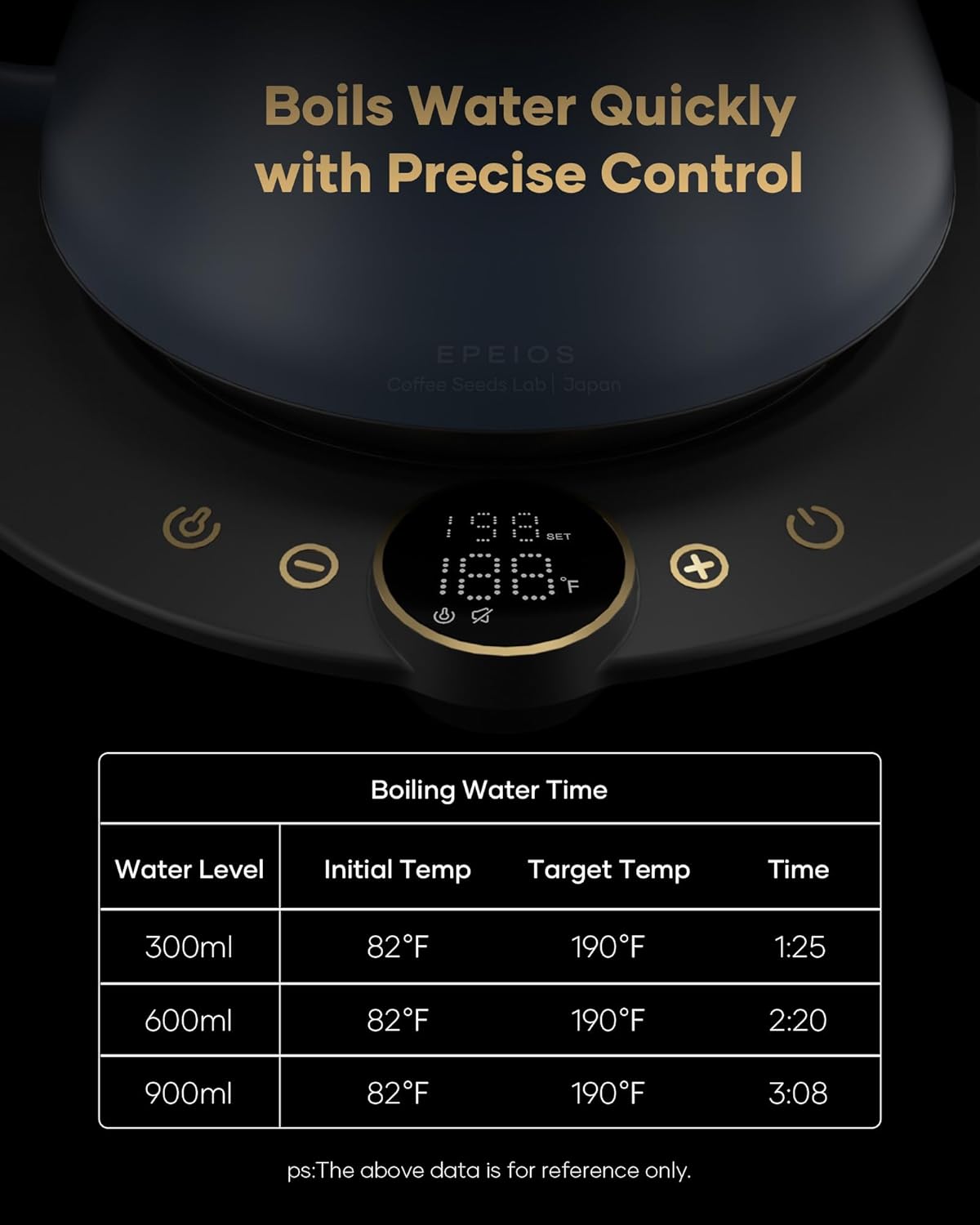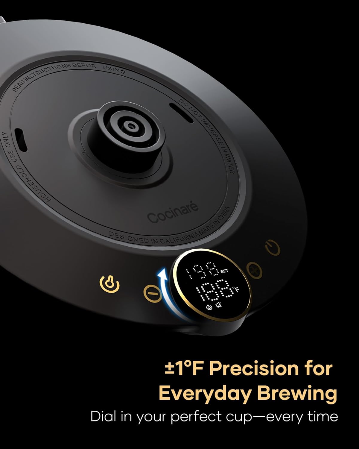 • Precision Heating & Pour Control: The intelligent base maintains your set temperature within ±1℉ for optimal extraction. The S-shaped spout delivers a steady, controlled pour - ensuring consistency in every cup.