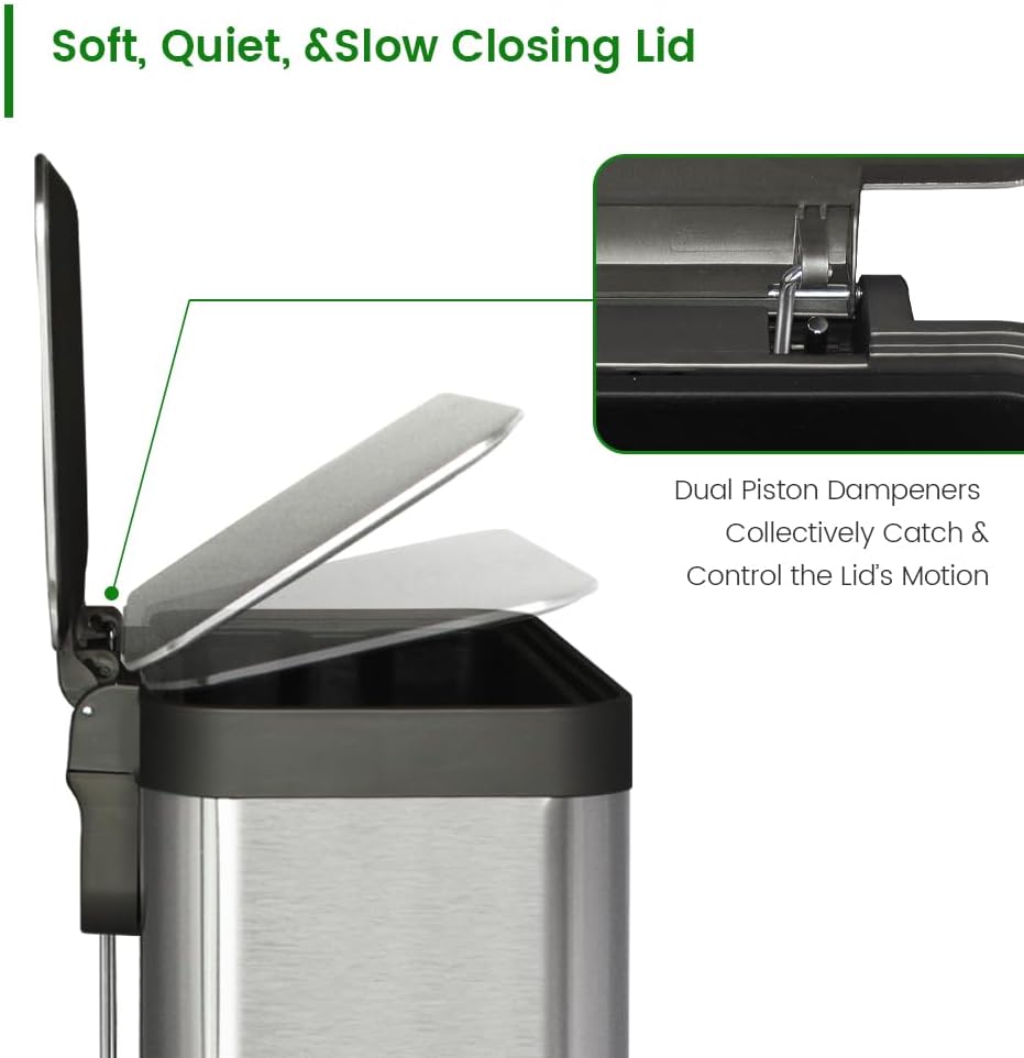 10 Gallon Stainless Steel Trash Can with Removable Inner Bucket, Soft Close & Stay Open Lid, Step-on Pedal – Modern Kitchen Waste Bin