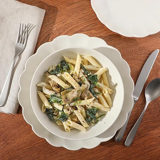 • SCALLOPED EDGES: Delicate scalloped edges grace each piece, evoking the refined elegance of Parisian dining and entertaining."