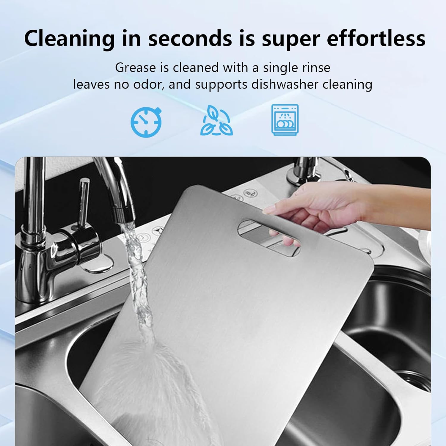 • Easy to clean and maintain: The surface of titanium cutting boards for kitchen is smooth and dense, and will not absorb stains such as juice or oil. After cooking, just rinse with water or wipe with a soft cloth to quickly restore cleanliness, without time-consuming cleaning steps.