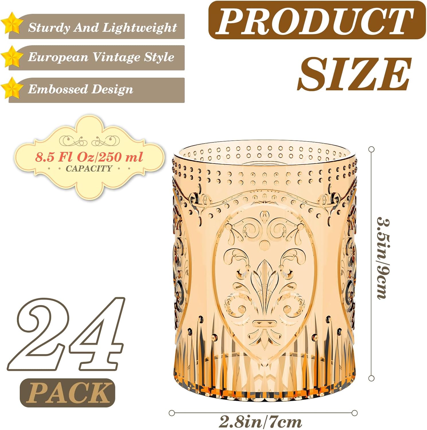 • Wide Occasions: you can use this retro embossed plastic drinking glasses tableware set on many occasions including weddings, anniversary, birthday parties, housewarmings, new years, family gatherings, Xmas parties, Thanksgiving parties, Halloween parties and other important holiday parties. From intimate family dinners to lavish celebrations, these cups bring a vintage charm that complements any decoration