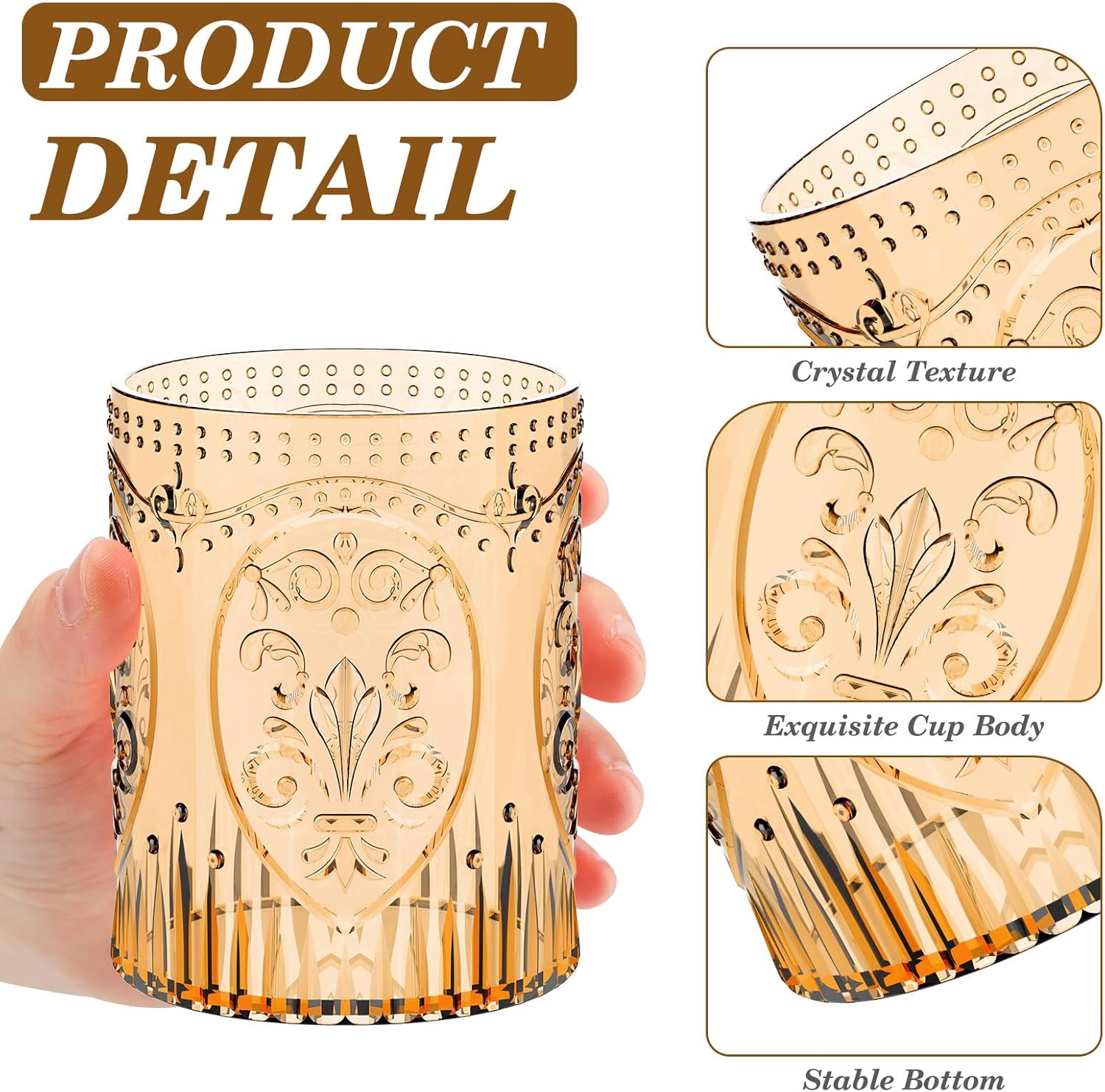 • Elegant Design: our retro embossed plastic cups set features a European vintage style and embossed pattern, comfortable to hold in the hand; Use our cups to sip your favorite drinks with your guests at your party and experience the irresistible vintage beauty, add a touch of stylish to your party and impress your guests