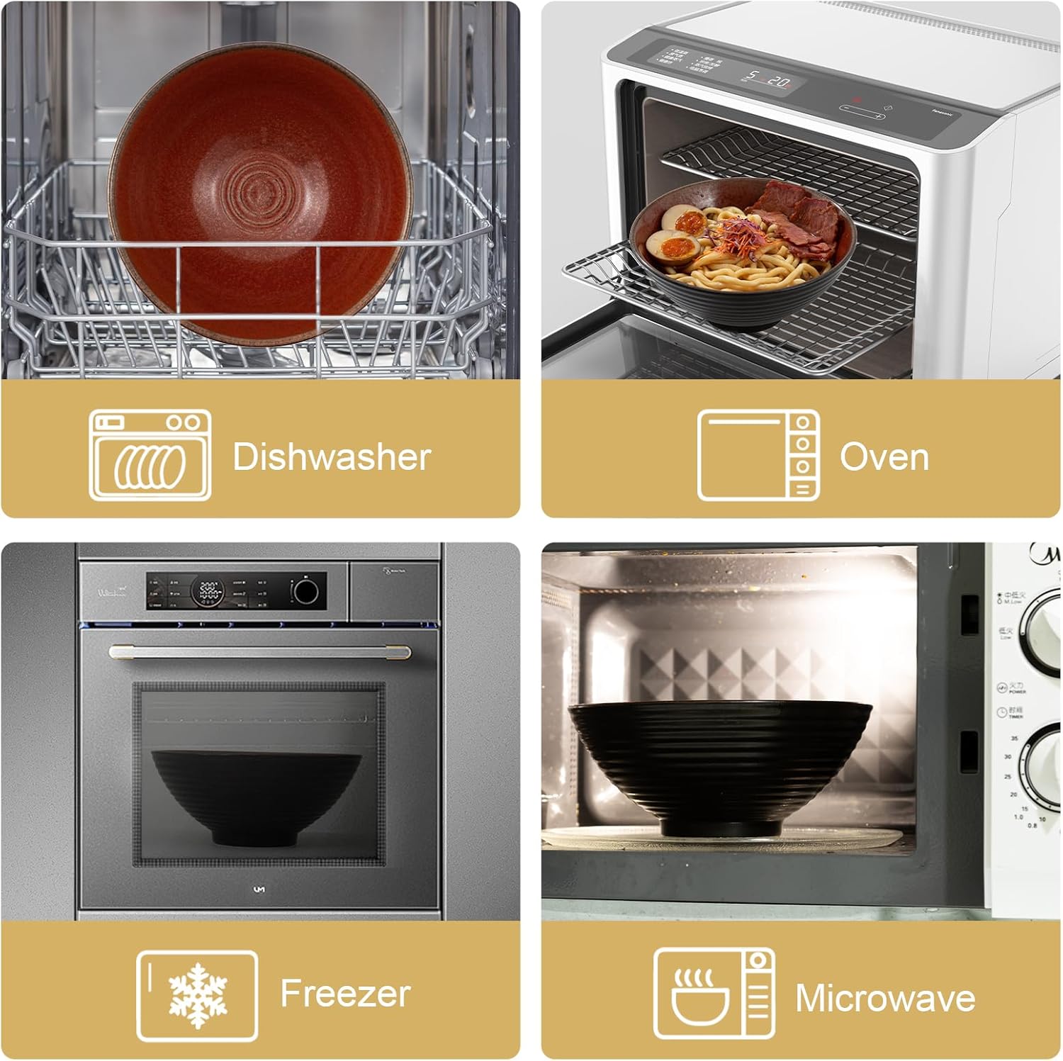 • Premium Quality & Safety: Crafted from high-quality, lead-free, and cadmium-free ceramic, our ramen bowls ensure a non-porous surface that resists food odors, stains, and impurities. Enjoy your meals without worrying about toxic chemicals leaching into your food. These bowls are healthier and safer than melamine alternatives.