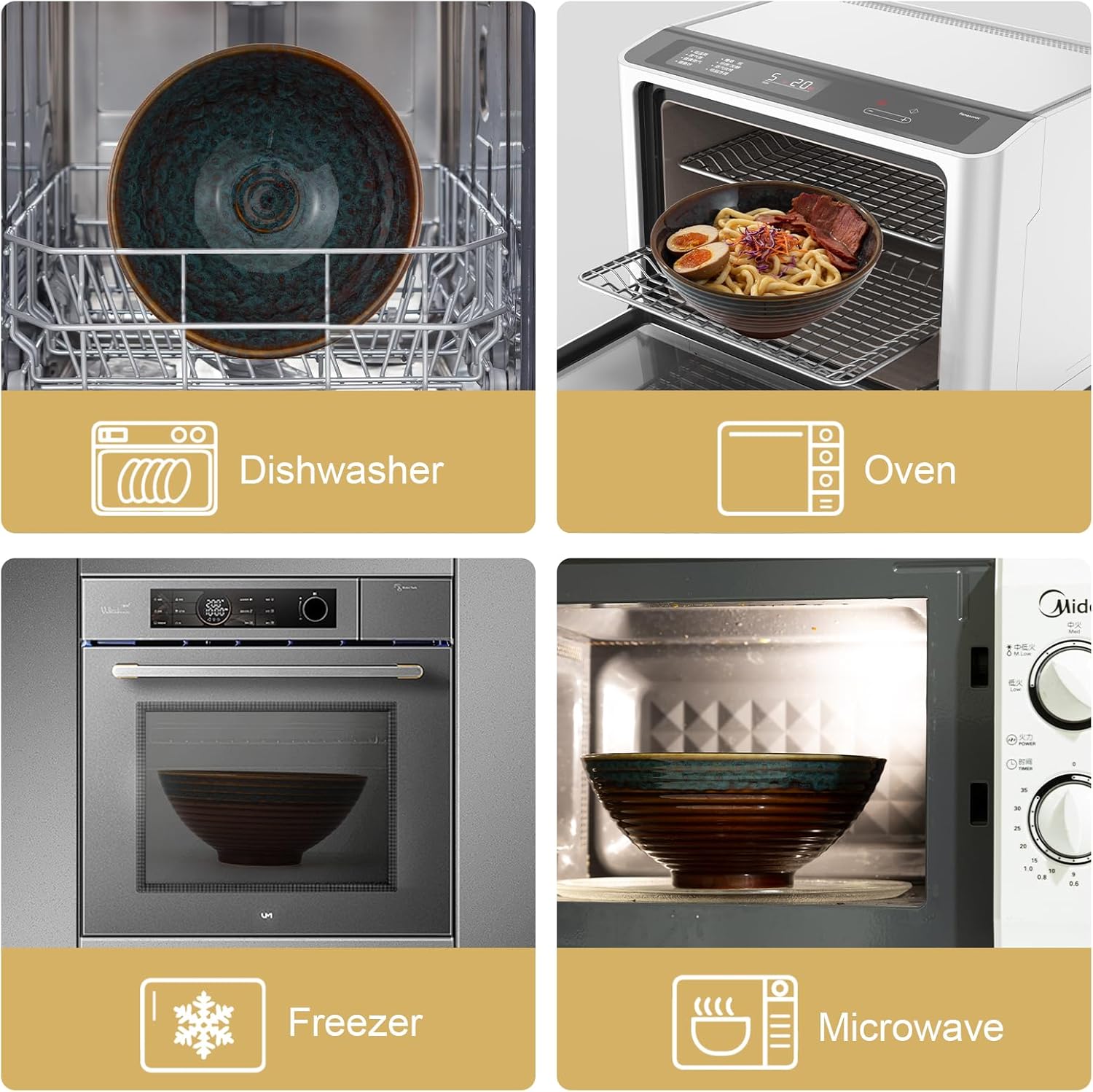 • Perfect Size & Versatility: With an 8-inch diameter and a 40 oz capacity, our bowls are ideal for holding generous portions of noodles, broth, and toppings without spilling. They are microwave, oven, freezer, and dishwasher safe, making them versatile and convenient for everyday use.