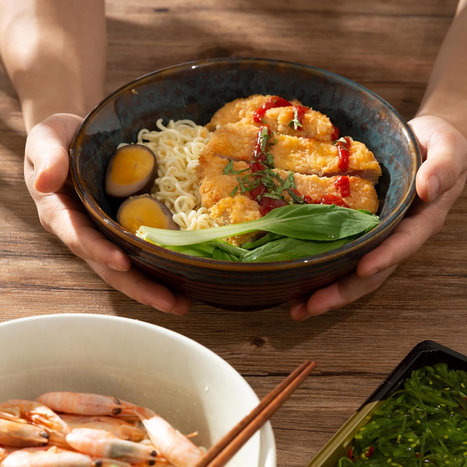 • Authentic Japanese Style: Our ramen bowls feature a traditional Japanese design that enhances the presentation of Asian-inspired dishes. Perfect for Homemade Ramen, Pho, Salad, Soup, Udon, Noodles, dumplings, and more, these bowls elevate your dining experience and stimulate your appetite.
