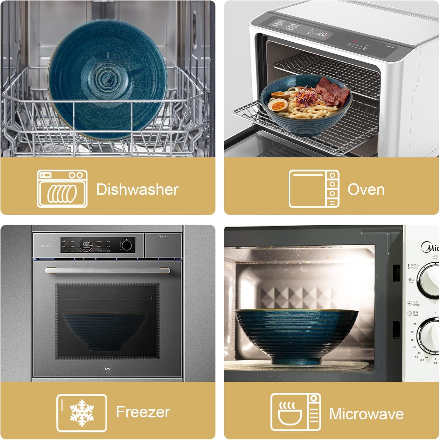 • Premium Quality & Safety: Crafted from high-quality, lead-free, and cadmium-free ceramic, our ramen bowls ensure a non-porous surface that resists food odors, stains, and impurities. Enjoy your meals without worrying about toxic chemicals leaching into your food. These bowls are healthier and safer than melamine alternatives.