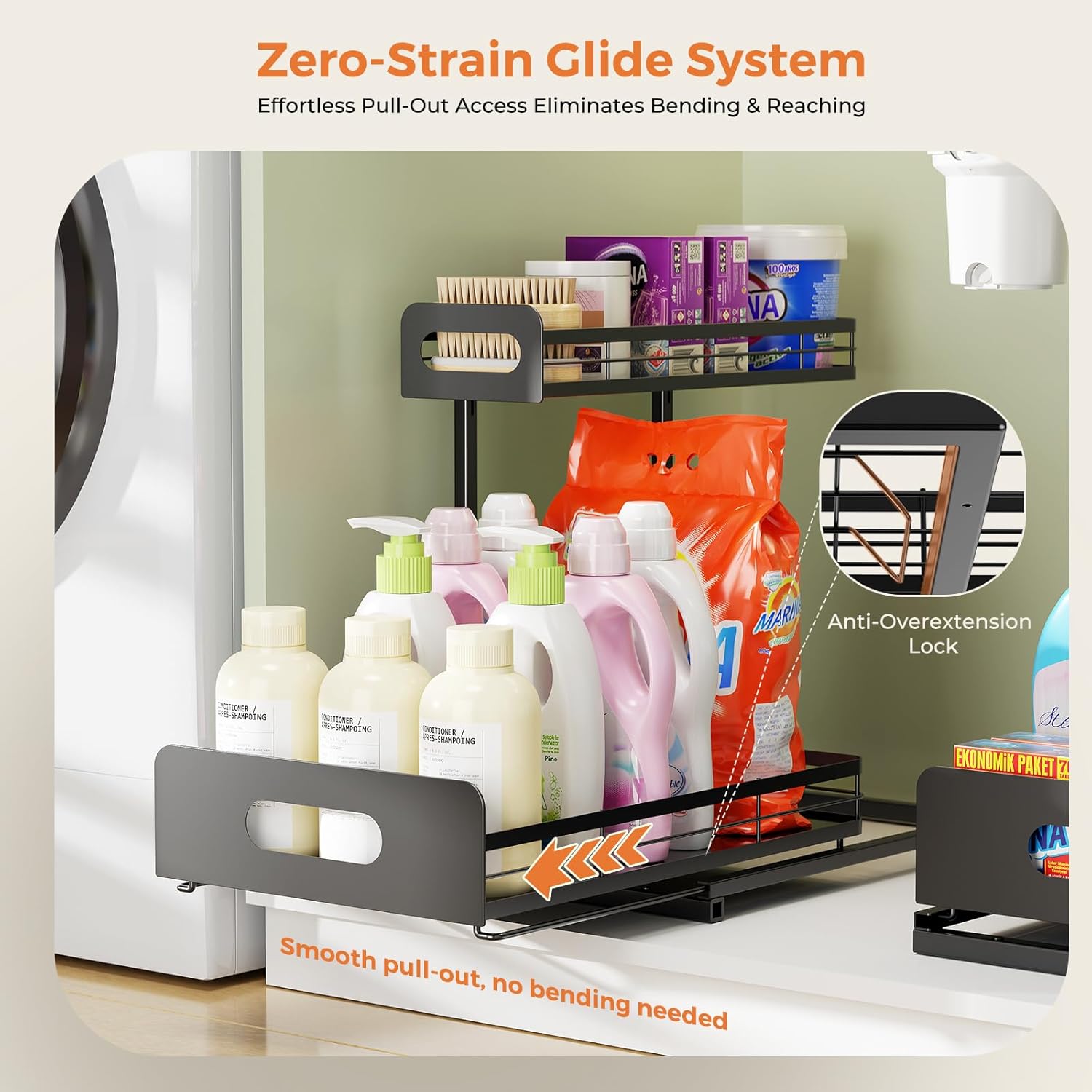 • Sturdy & L-shaped Design: Extra-thick reinforced steel and L-shaped structure optimize space under the sink and boost load capacity. Reinforced edges prevent wobbling, supporting up to 50 lbs for long-term use in kitchens, bathrooms or laundry rooms