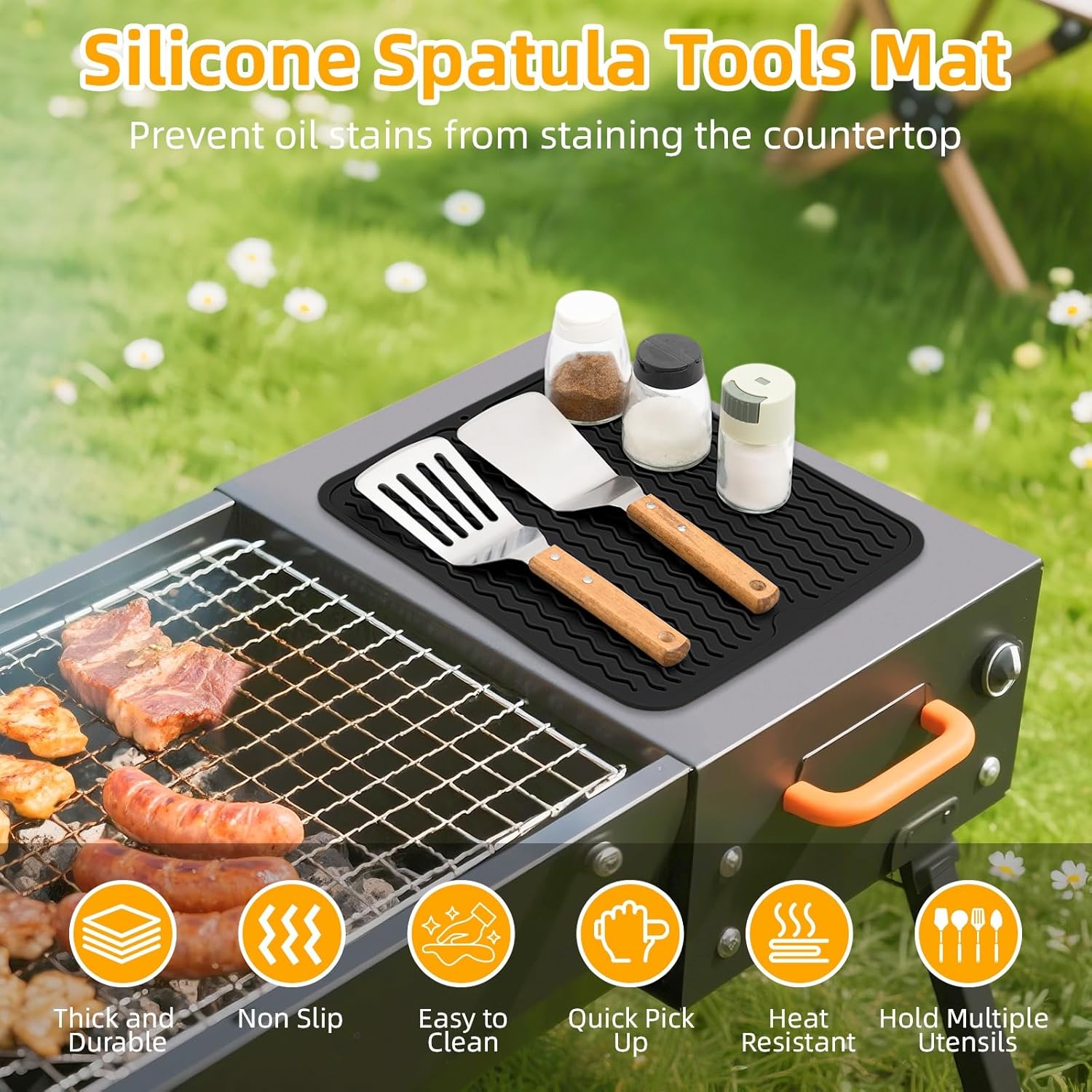 Blackstone Griddle Accessories Silicone Grill Side Shelf Tool Mat, Outdoor BBQ Spatula Mat, with Drip Pad Kitchen Countertop Heat Resistant Mat (Black)