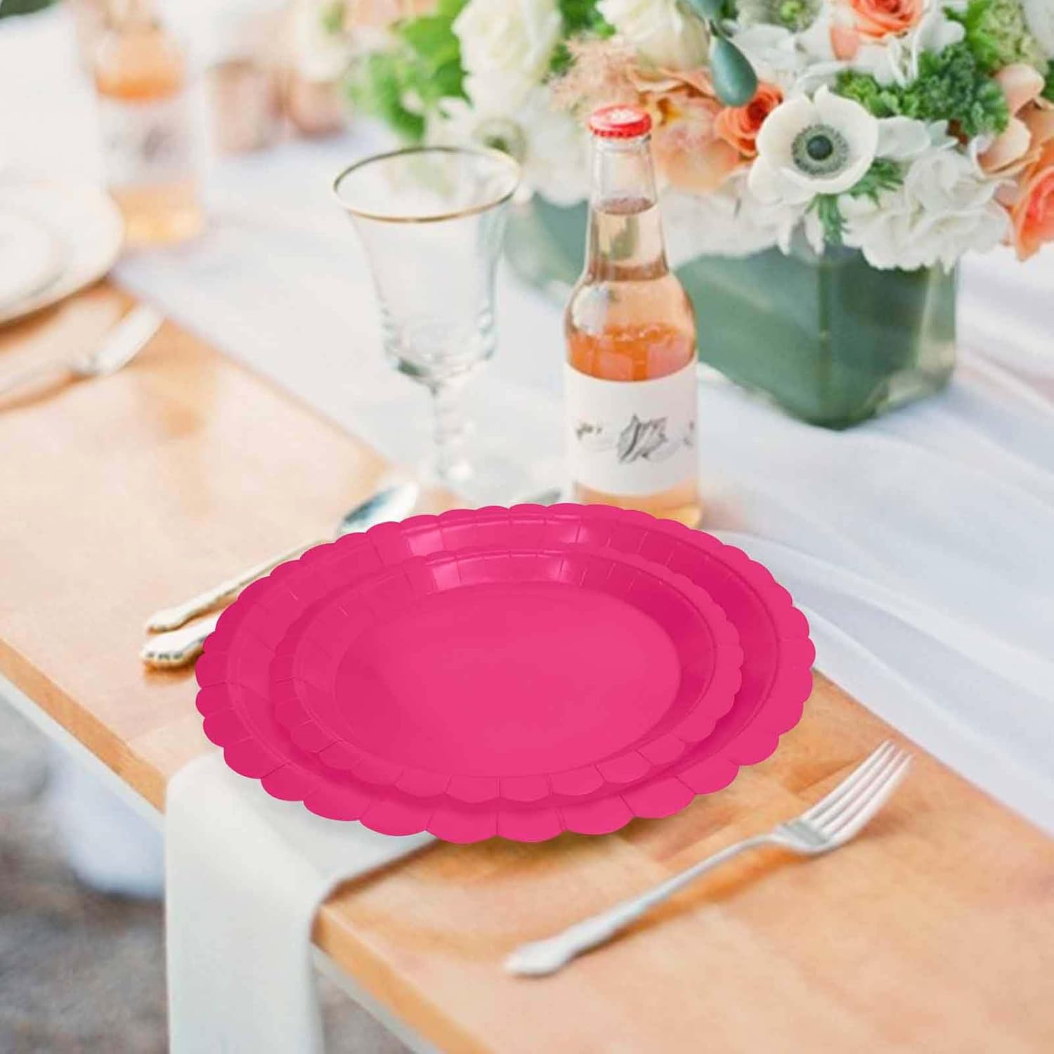 50 Pcs Hot Pink Scalloped Paper Plates 25 × 7'' and 25 × 9'' Disposable Hot Pink Scalloped Dinner Plates for Wedding Baby Shower Birthday Party Disposable Dessert Plate