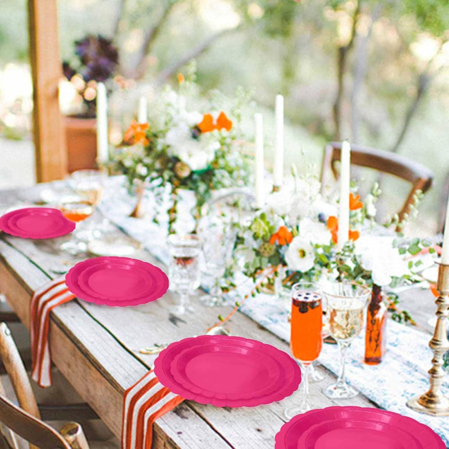 • Hot pink plates: You will receive 25 pcs 7 inch and 25 pcs 9 inch hot pink scalloped plates, which are sufficient for both daily dining needs or party needs. The hot pink scalloped dessert plates help to enhance the beauty and make the party more elegant
