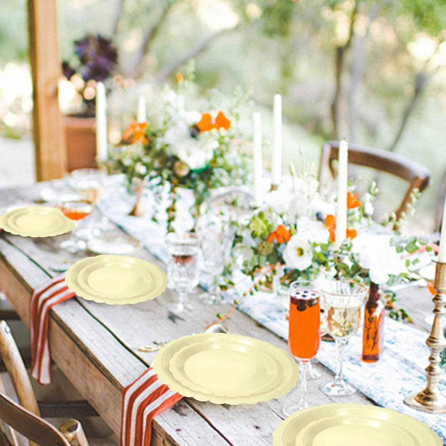 50 Pcs Yellow Scalloped Paper Plates 25 × 7'' and 25 × 9'' Disposable Yellow Scalloped Dinner Plates for Wedding Baby Shower Birthday Party Disposable Dessert Plate
