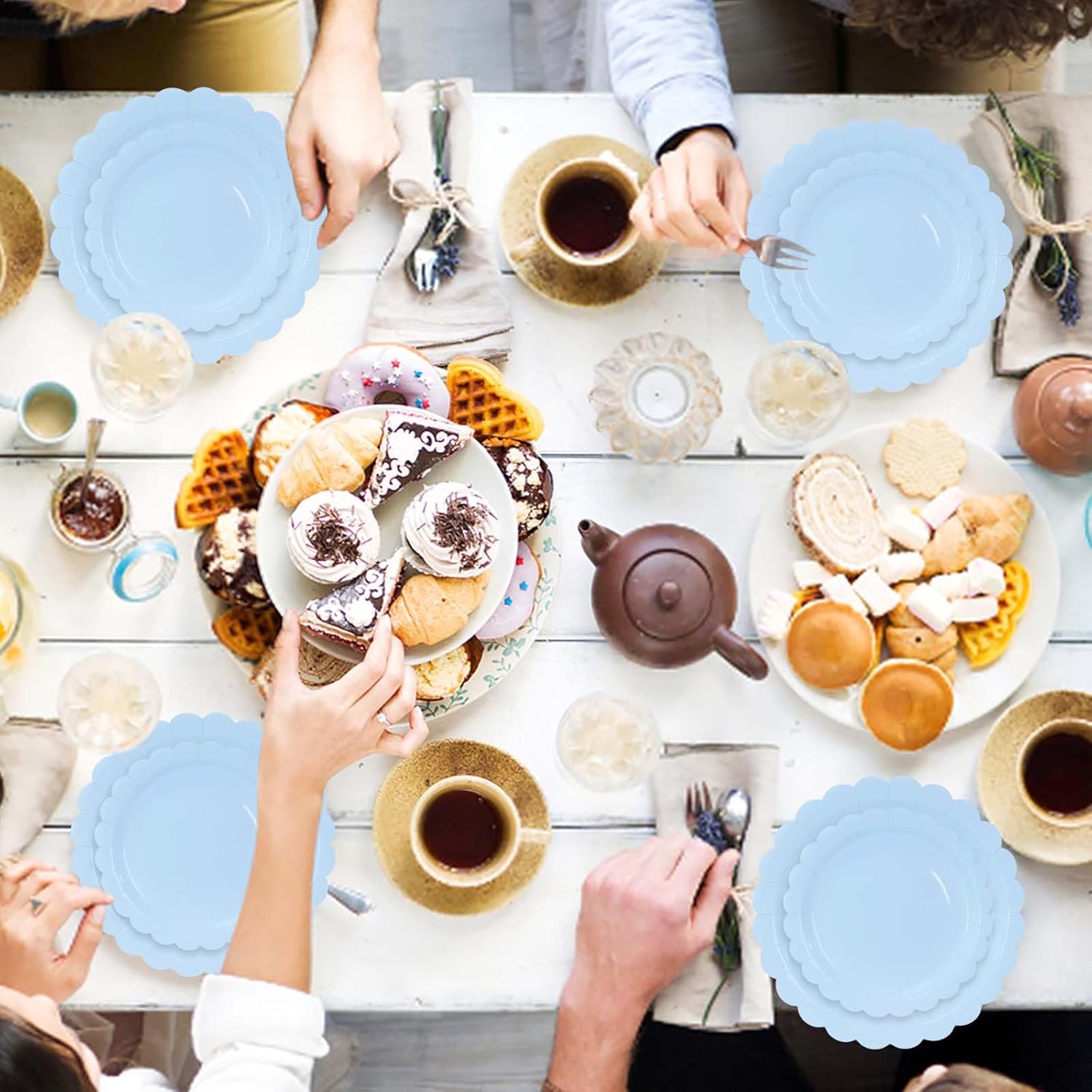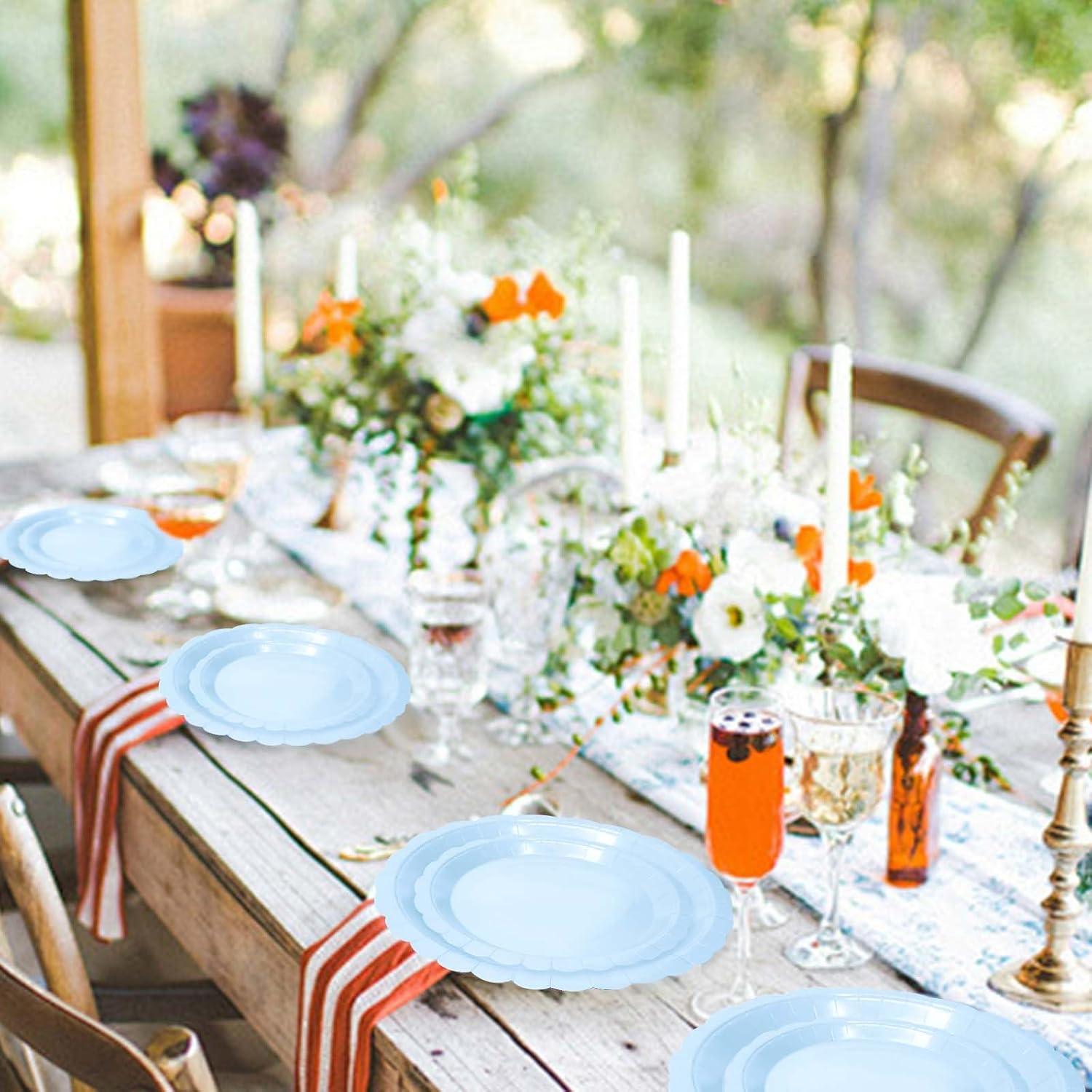 • Scalloped plates disposable: The light blue paper plates with disposable design can reduce cleaning time, allowing you to enjoy more family time. The disposable blue dessert plates can provide convenience for both you and guests for parties