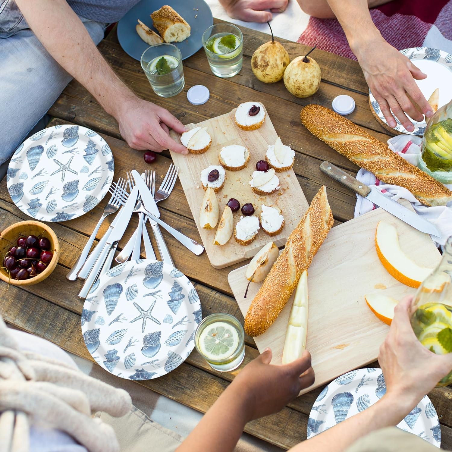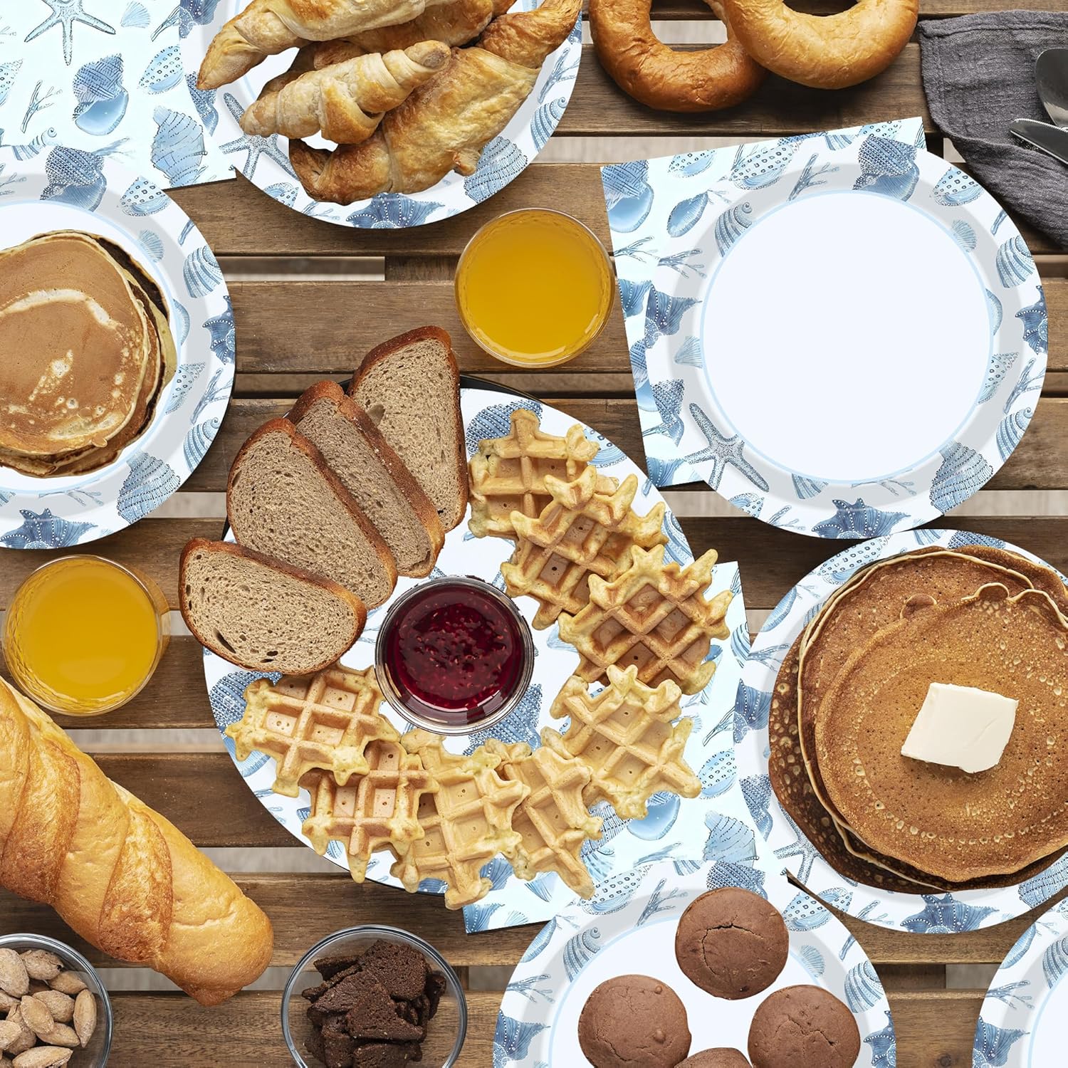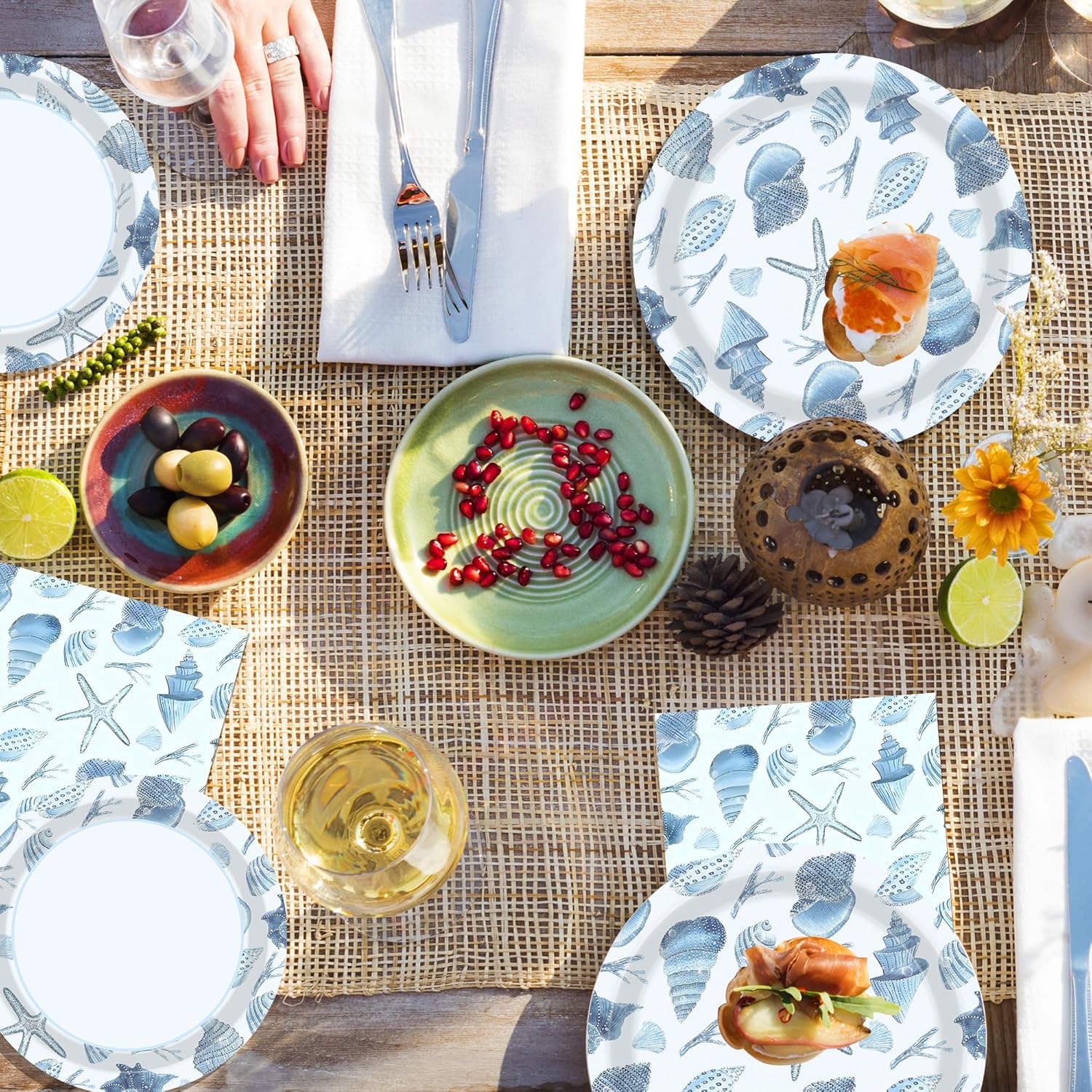 • Ocean themed design: Our ocean seashell beach themed party supplies features a charming coastal scene with seashells, conch shells, and starfish, transporting your guests to an ocean paradise as they enjoy their meal. The ocean-inspired starfish design adds a splash of summer and seaside vibes to your party décor—perfect for your next beach-themed celebration or poolside gathering.