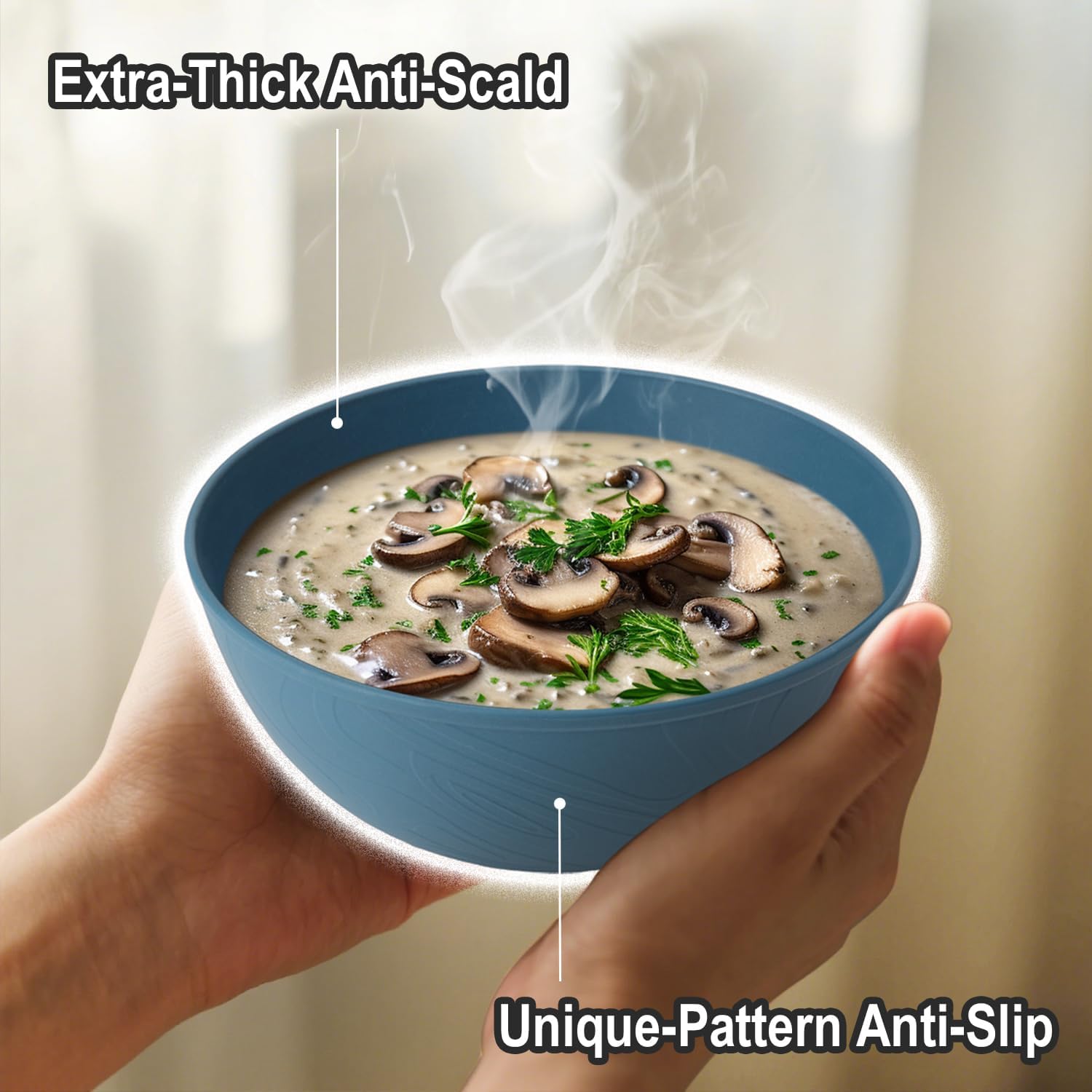 • 【𝗣𝗿𝗲𝗺𝗶𝘂𝗺 𝗤𝘂𝗮𝗹𝗶𝘁𝘆 𝗘𝘅𝘁𝗿𝗮 𝗧𝗵𝗶𝗰𝗸 𝗕𝗼𝘄𝗹𝘀】- Our wheat straw bowls are unbreakable for daily used. These kitchen bowls are designed thicker than general bowls in order to anti-scald.The flowing pattern around bowls are designed for anti-slipping.Wrova is committed to improving the safety and user experience of tableware.
