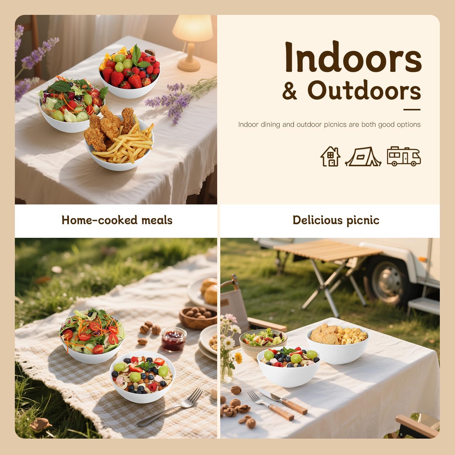 • 【𝗜𝗻𝗱𝗼𝗼𝗿𝘀 & 𝗢𝘂𝘁𝗱𝗼𝗼𝗿𝘀 𝗨𝘀𝗶𝗻𝗴】- These bowls are lightweight and unbreakable, featuring a smooth surface that makes cleaning effortless. Perfect for camping, RV trips, and outdoor adventures. Their unique flowing water pattern elevates them beyond traditional tableware, transforming everyday meals into aesthetic experiences at home.