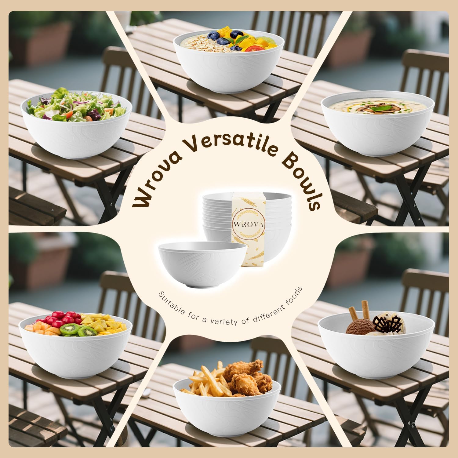 Wrova White Wheat Straw Bowls for Cereal and Salad,Alternative Plastic Bowls Set of 6,40oz Unbreakable Soup Bowls suitable for Kitchen,Party,Camping and R.V.