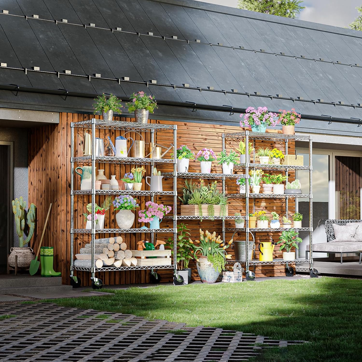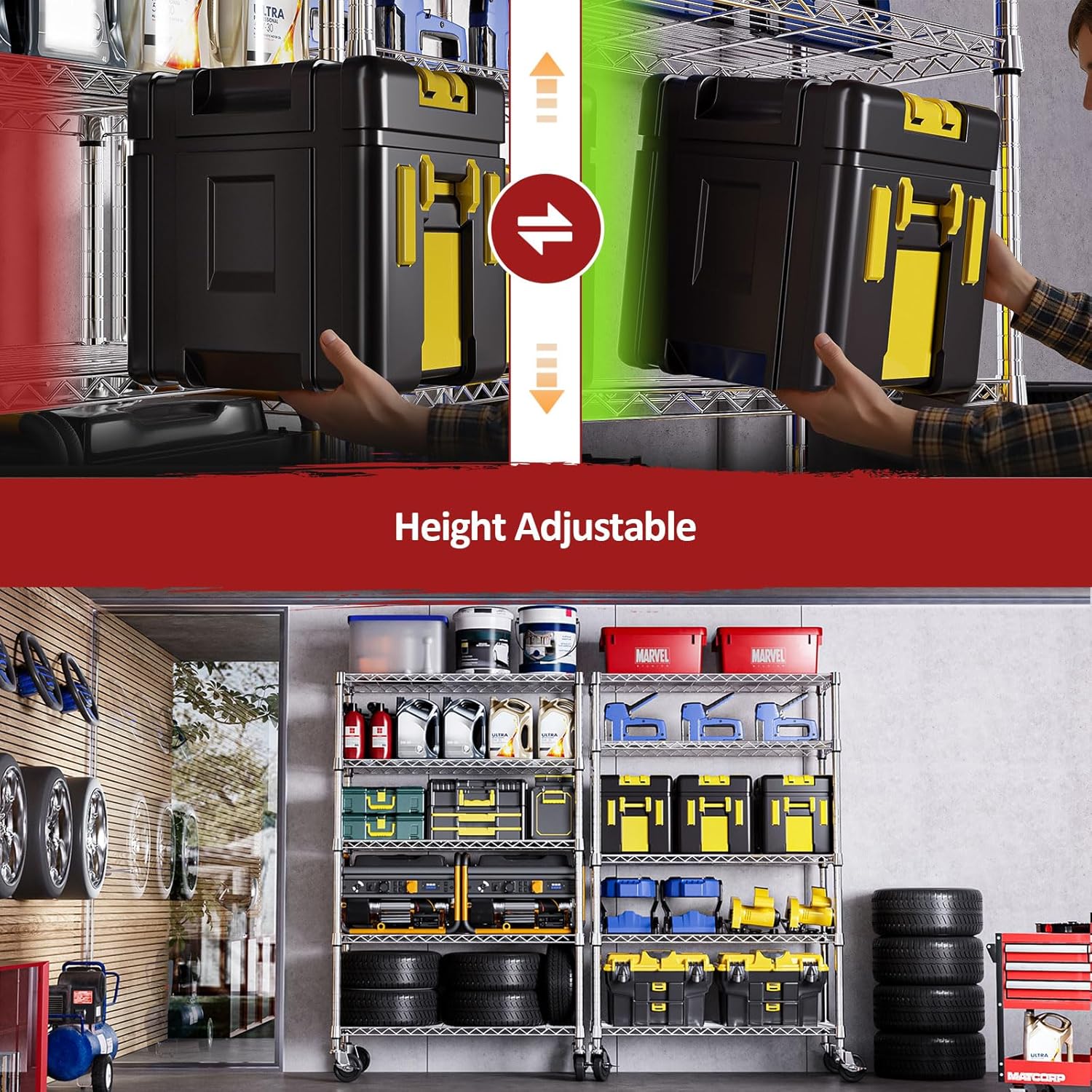 • 【Adjustable Shelves & 360° Lockable Wheels】Customize the height of each shelf in 1-inch increments to fit everything from large appliances to small bins. Equipped with 4 smooth-rolling 360° caster wheels (2 with locks), this unit offers maximum mobility and stability—effortlessly move it around your home, garage, or office, and lock it in place when needed.