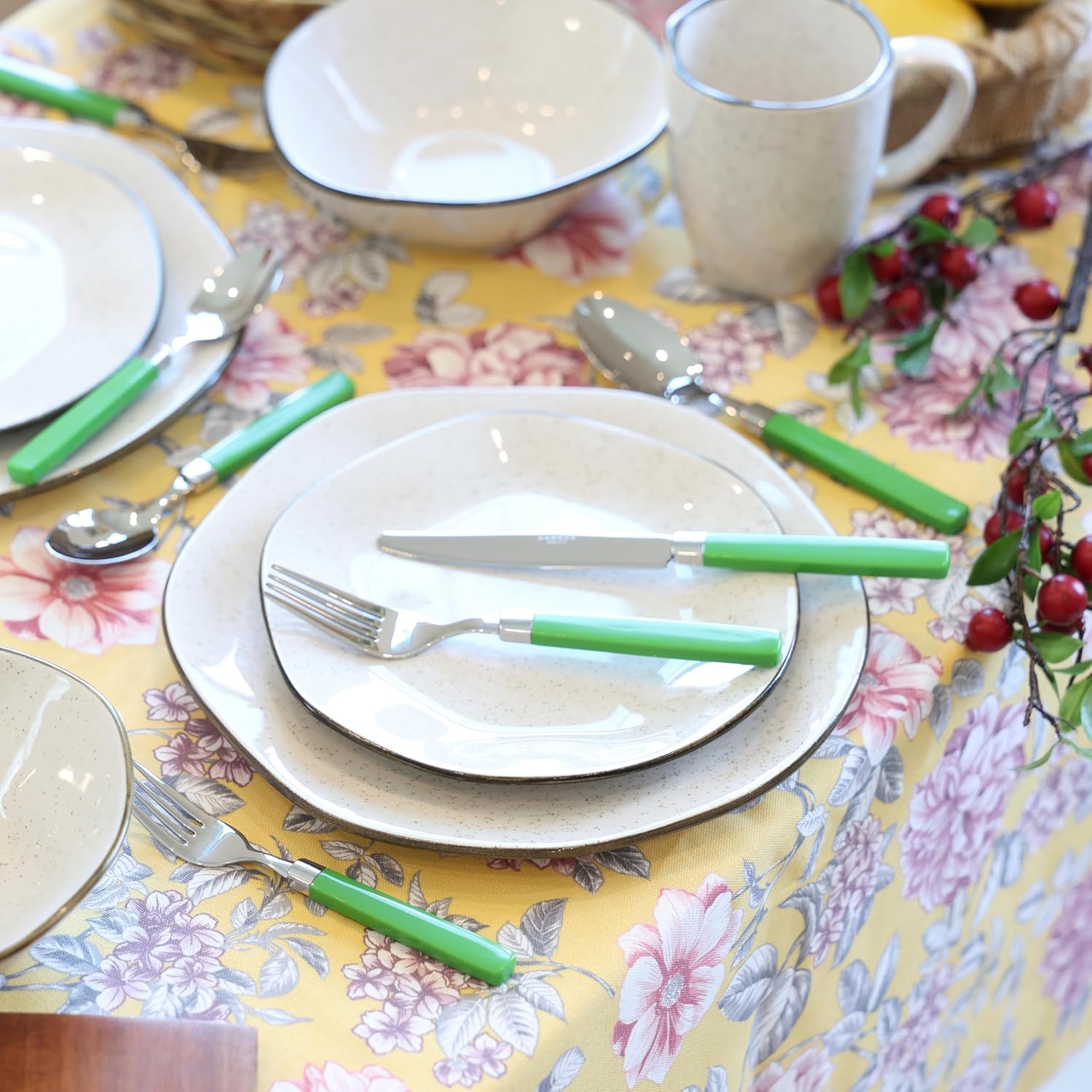 • Colorful Plastic Handles – Modern, vibrant, and colorful handles add a playful yet elegant touch to your table setting, perfect for brightening up everyday dining or themed gatherings.