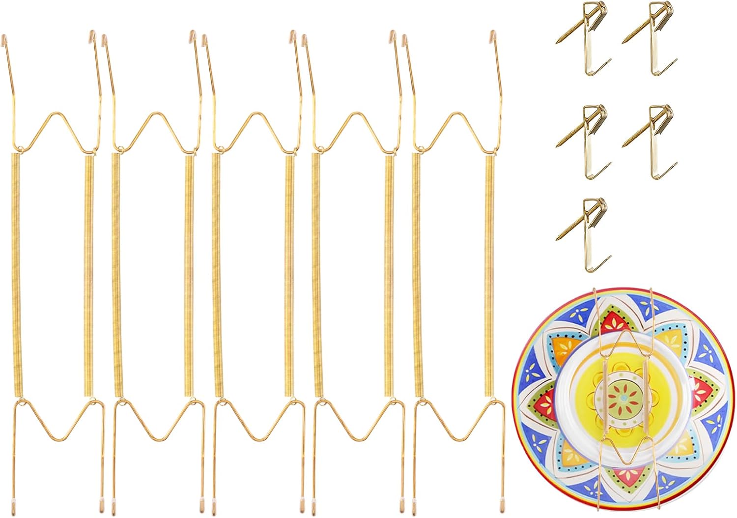 5 Pieces Plate Hangers for The Wall Suitable for 16-20 Inch Decorative Plate adjustable and stretchable,with Metal Hooks for Wall Displaying Plates Decorative & Arts(Gold)