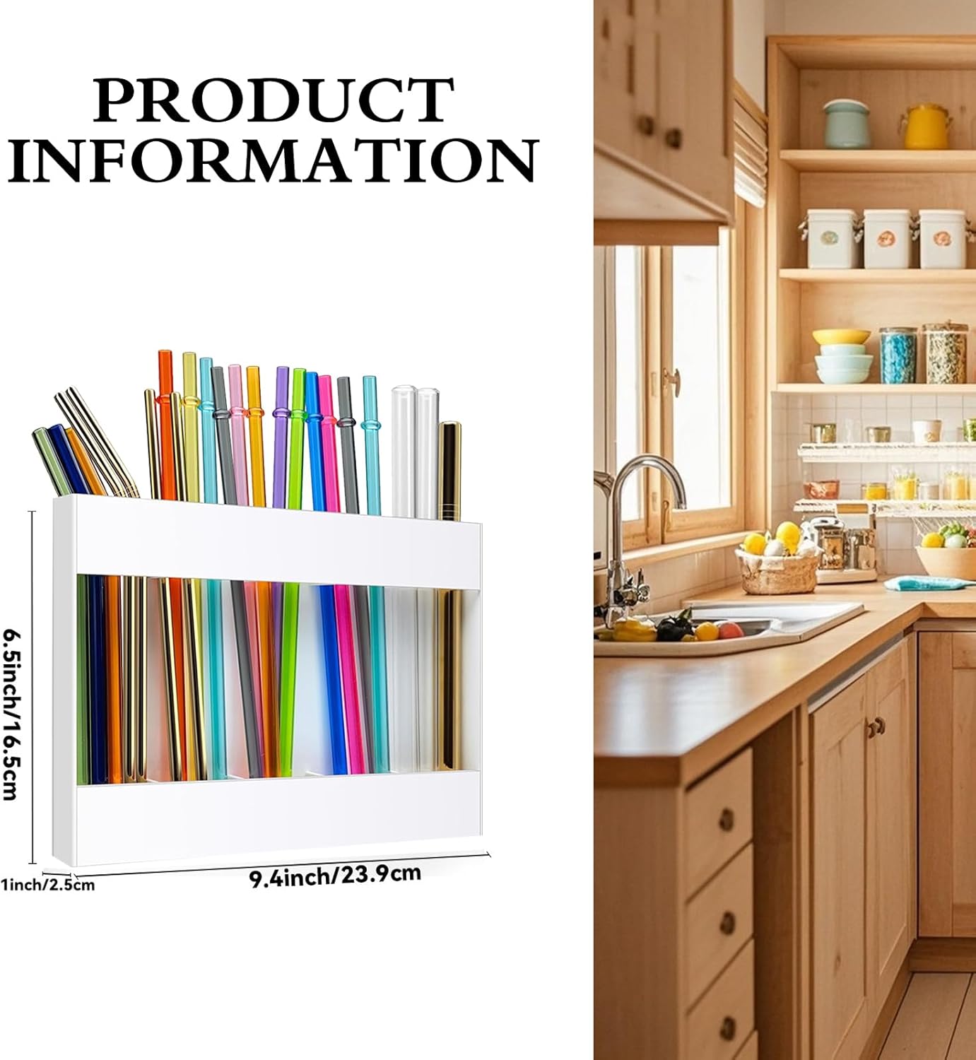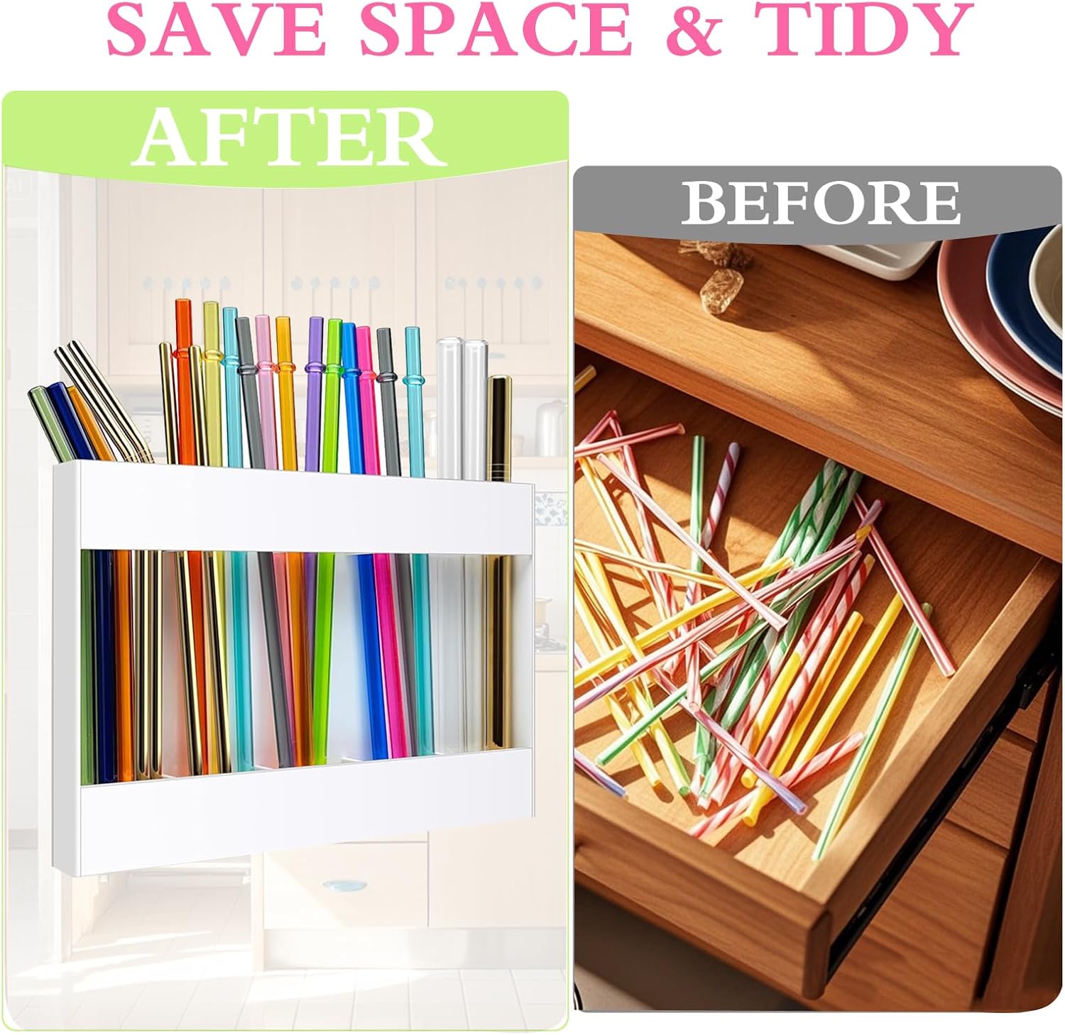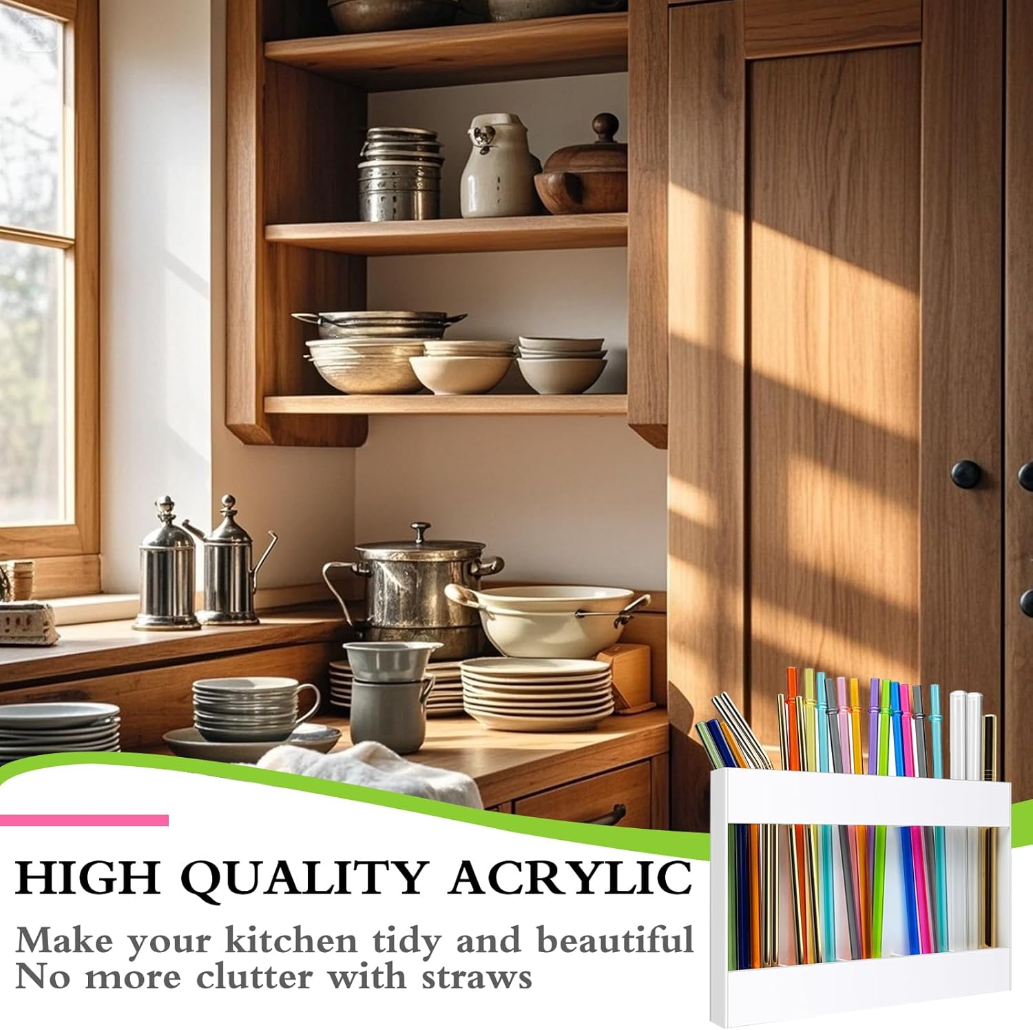 Acrylic Straw Holder Organizer - Cabinet Door Mounted with Adhesive Tape, Reusable Storage for Drinking & Tumbler Straws, Space Saving Kitchen Organization