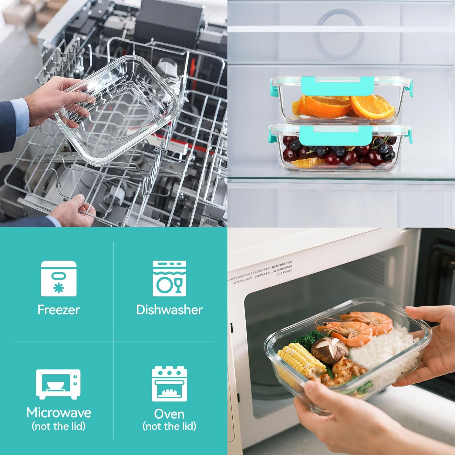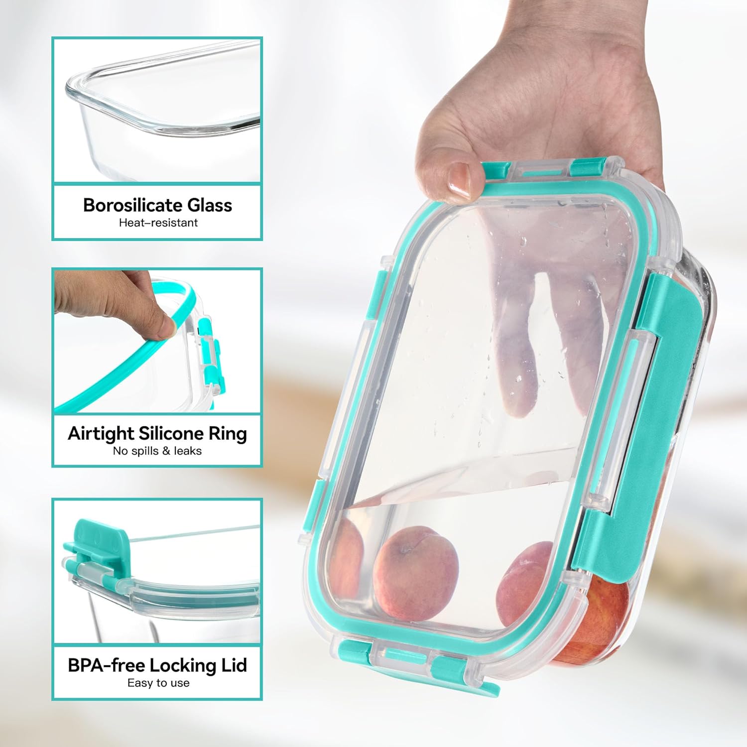 • AIRTIGHT SEALED LIDS: Equipped with BPA-free plastic lids featuring silicone seals, these glass storage containers with lids keep your food fresh longer while preventing leaks and spills. Ideal for bringing meals to work, the gym, or on picnics.