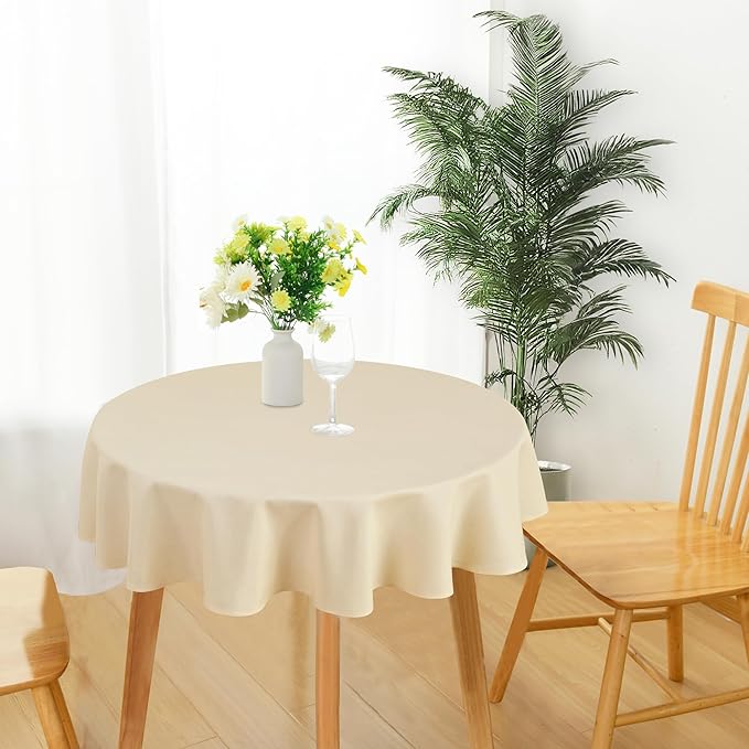 JIUZHEN Round Textured Table Cloth Linen Wrinkle Free Stain Resistant Farmhouse Decorative Circular Tablecloth for Kitchen, Dining, Party, Wedding, Outdoor Use (30 Inch Round,Champagne)
