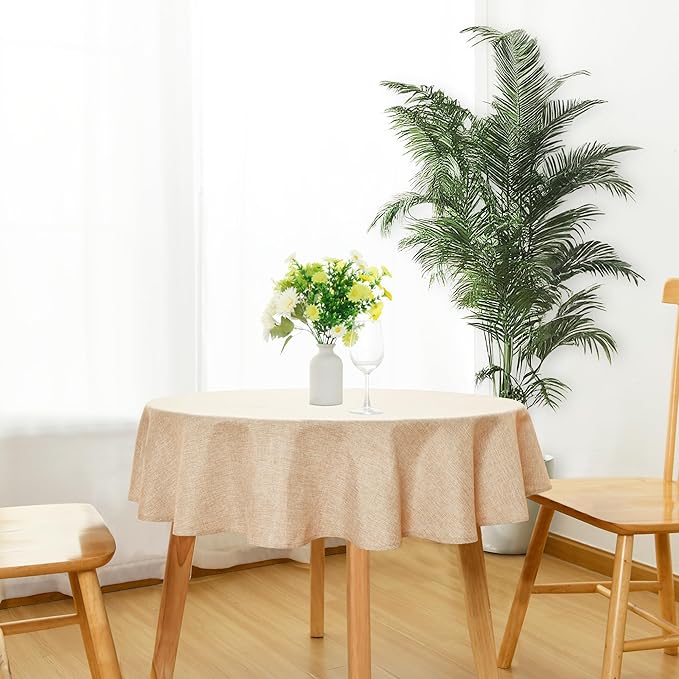 JIUZHEN Round Textured Table Cloth Linen Wrinkle Free Stain Resistant Farmhouse Decorative Circular Tablecloth for Kitchen, Dining, Party, Wedding, Outdoor Use (40 Inch Round,Beige)