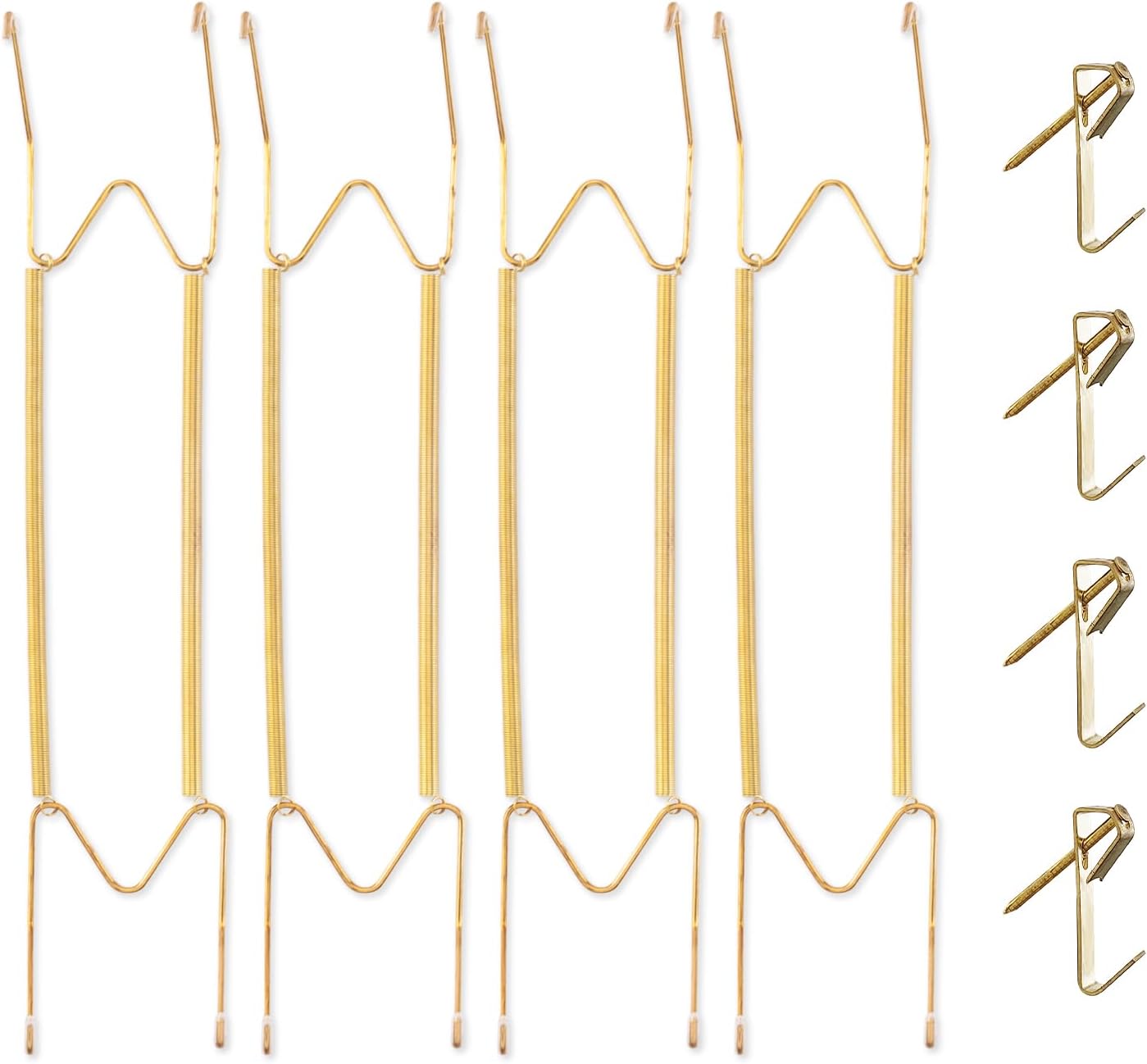 Bilillo 4 Pack Plate Hangers for The Wall, 16–20 Inch Large Decorative Plates, Heavy Duty Stainless Steel Spring Wire Holders with Wall Hooks for Secure Display of Platters and Collectible Plates