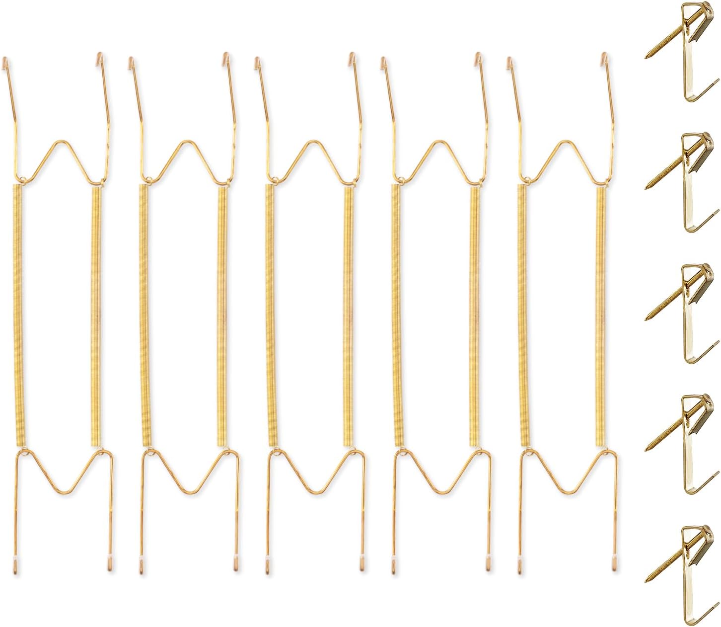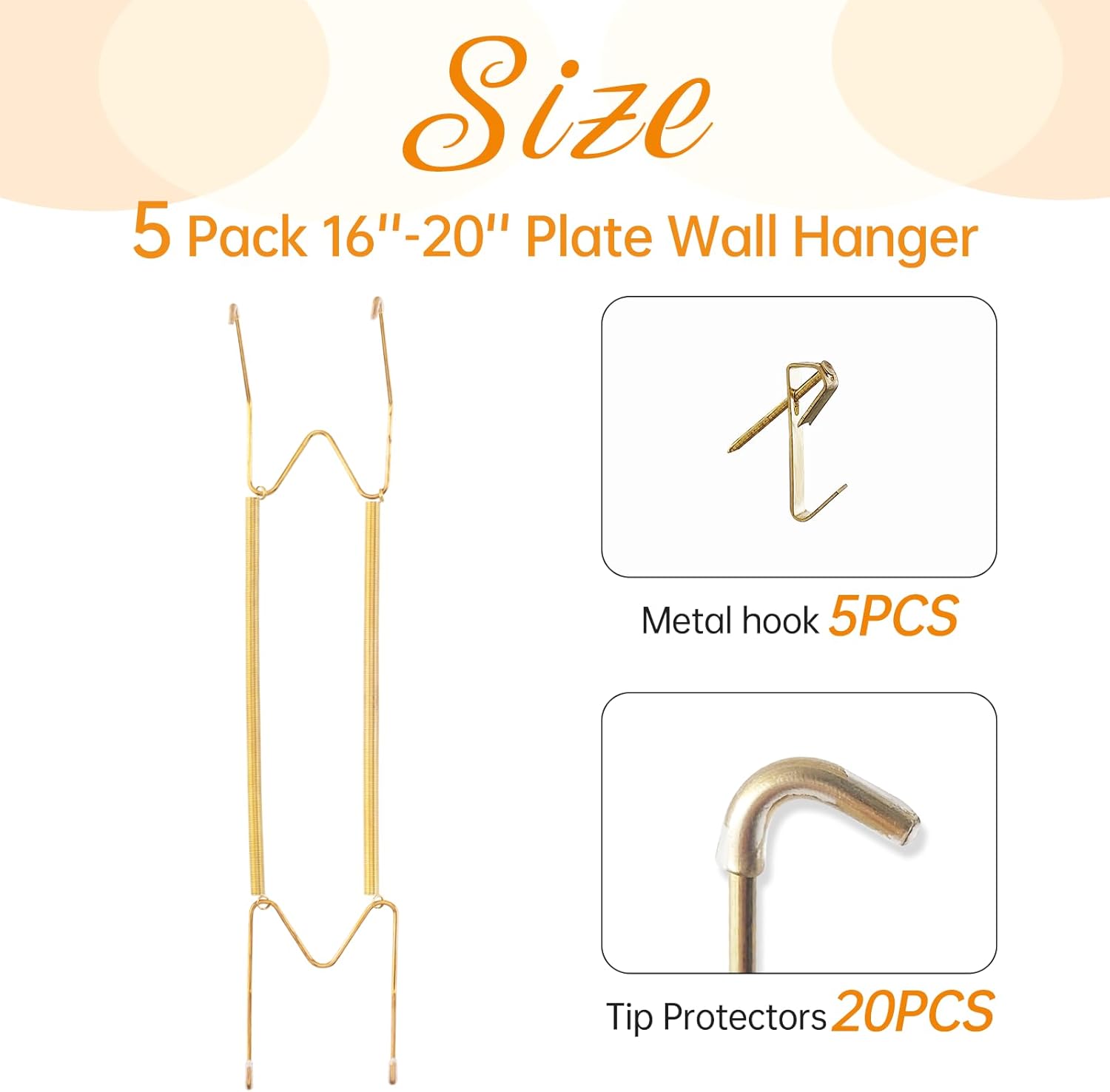 Bilillo 5 Pack Plate Hangers for The Wall, 16–20 Inch Large Decorative Plates, Heavy Duty Stainless Steel Spring Wire Holders with Wall Hooks for Secure Display of Platters and Collectible Plates