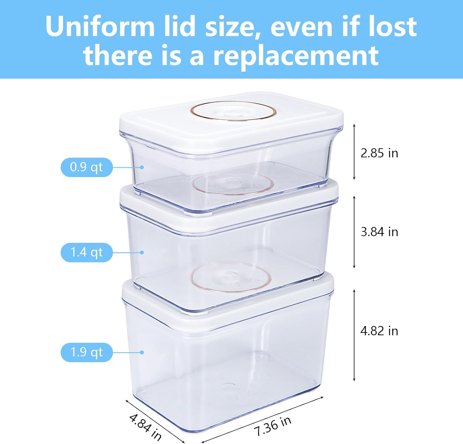 • AIRTIGHT FOOD STORAGE CONTAINERS: VIXINO vacuum containers with leak-resistant lids ensures safe transport and mess-free storage of meals and snacks, allow you to seal foods that weren't possible to seal before, such as the soups, stews, and marinades, and delicate foods like bread, lettuce and pastries, also suitable for the leaves vegietable and fruits like stawberry and so on. The vacuum containers are dishwasher, freezer, refrigerator, and microwave-safe, BPA-Free.