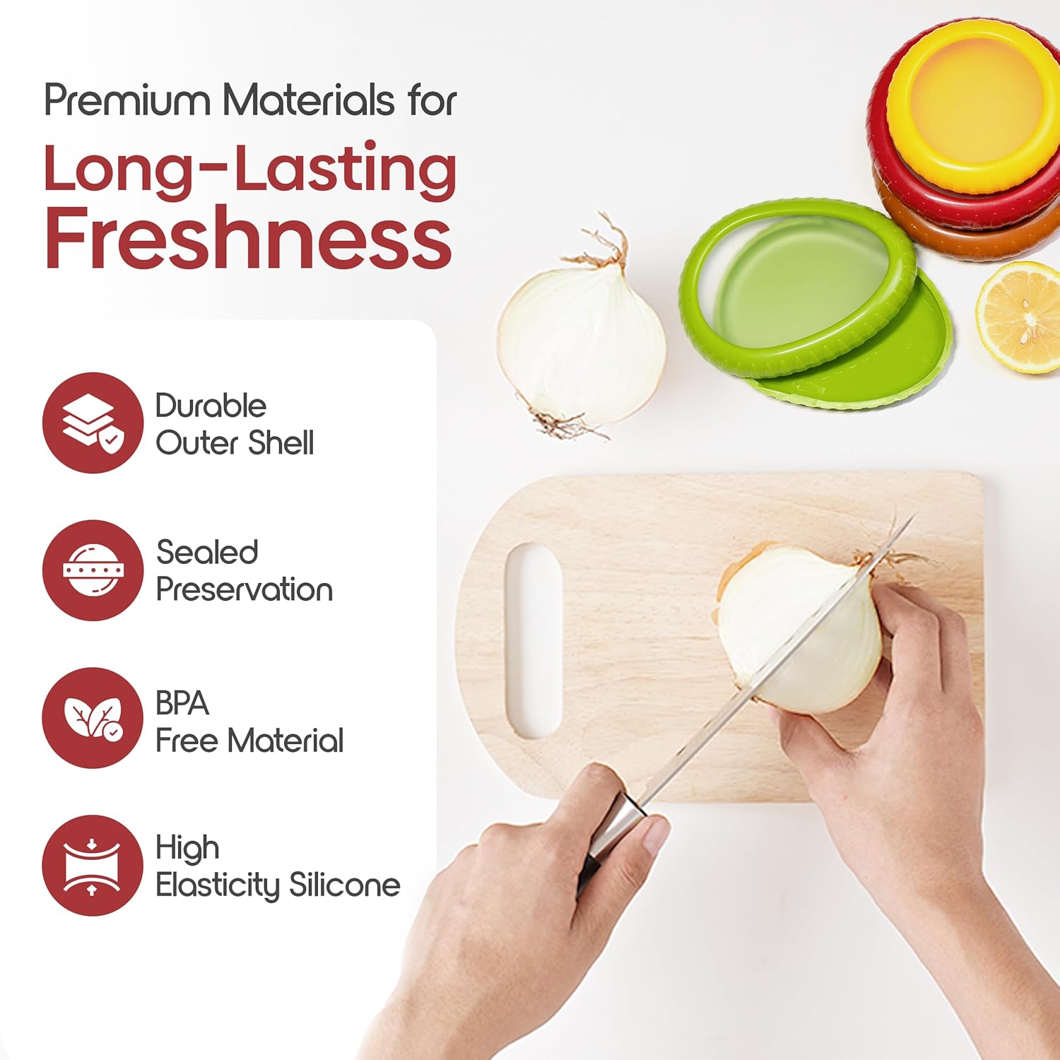 • VERSATILE & REUSABLE FOR EVERYDAY USE: This multi-size set can fit a variety of fruits and also works well for vegetables. These reusable containers can store various items, including avocados, lemons, tomatoes, and onions. They replace single-use plastic wraps, offering an environmentally friendly food storage option.