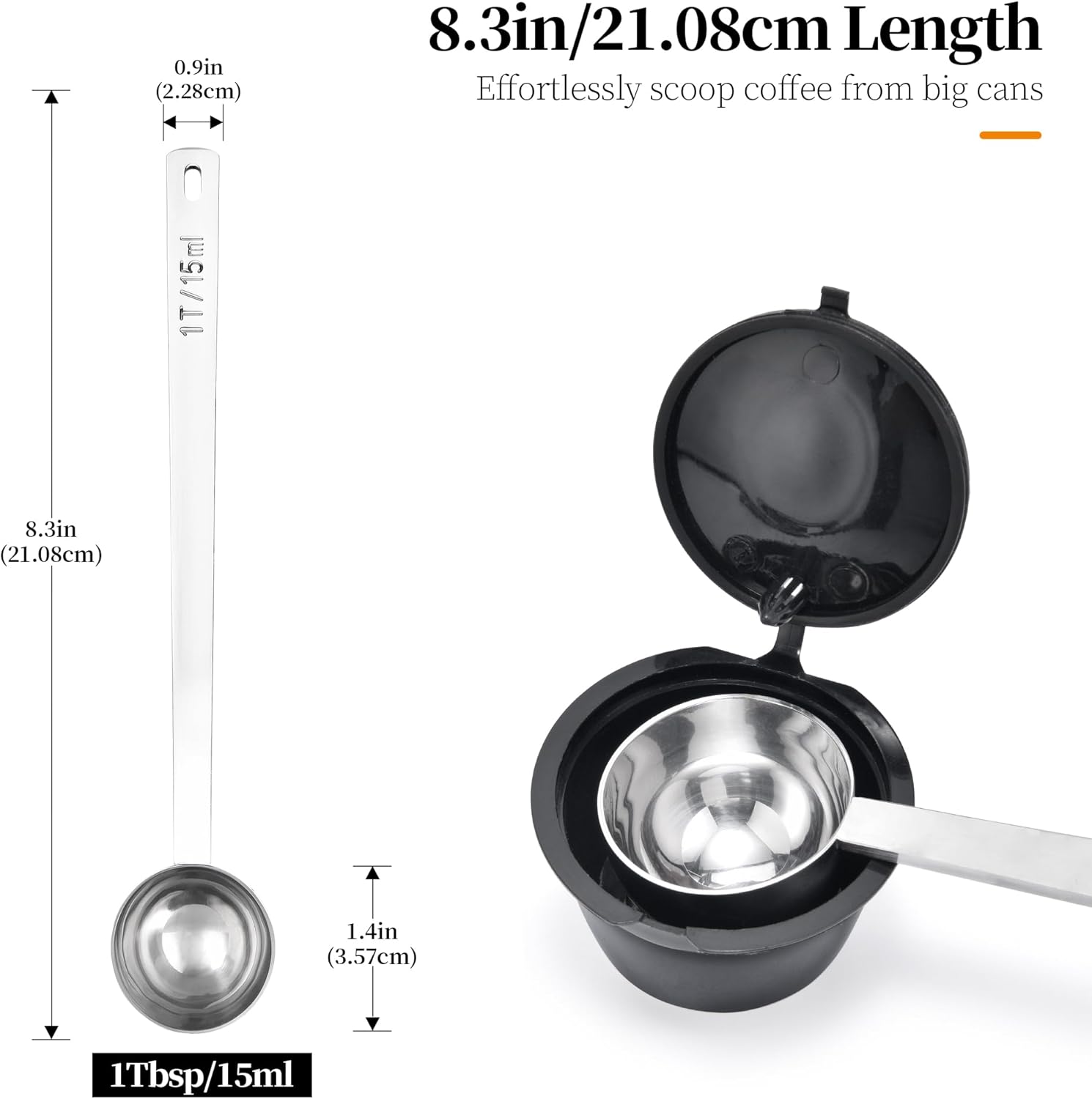 • [8.3-Inch Extra-Long Handle – Reach Deep, Stay Clean & Effortless] No more digging into coffee bags or spice jars with your hands! Our 8.3 inch long-handled coffee scoop is specially designed to reach the bottom of tall containers effortlessly – keeping your hands clean while you scoop. The ergonomic length of this coffee scoop gives you total control, while the sturdy stainless steel construction ensures it won't bend, even in dense grounds. No more wasted coffee, no more messy hands.