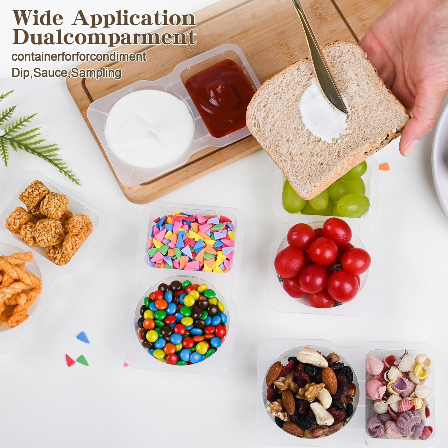 20 sets Reusable Snack Containers 2 Compartment Condiment Container With Lids Snackle Box Container Portion Control for Refrigeration Sauce,Outdoor Takeaway,Travel