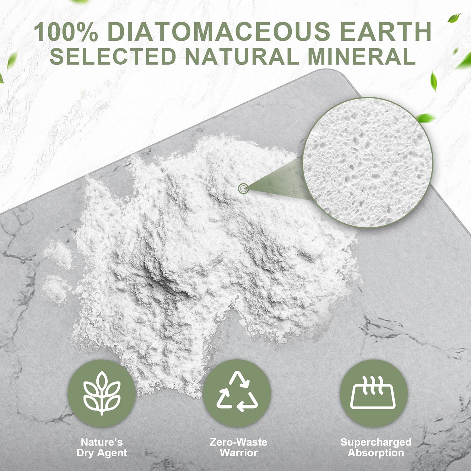 • [NATURAL DIATOMACEOUS EARTH DRYING MAT]:This stone dish drying mat is made of natural diatomaceous earth in the material, which is natural and environmentally friendly, non-toxic and safe. The stone drying mat lasts longer than traditional drying mats and ensures that your kitchen countertops are drier and tidier while in use.