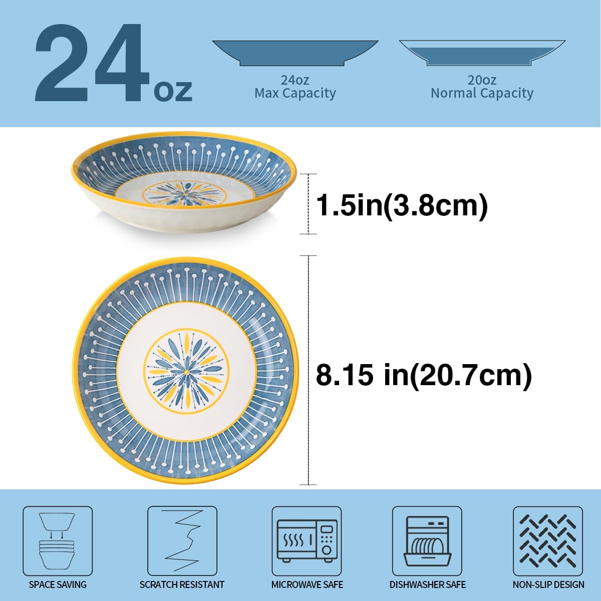 Yeacccng Pasta Bowls Set of 4, 24 Oz Ceramic Salad Bowls, 8 Inch Colorful Serving Bowls for Pasta,Salad,Oatmeal,Fruit, Easy to Clean, Dishwasher & Microwave Safe,Scratch-Resistant, Lead-Free