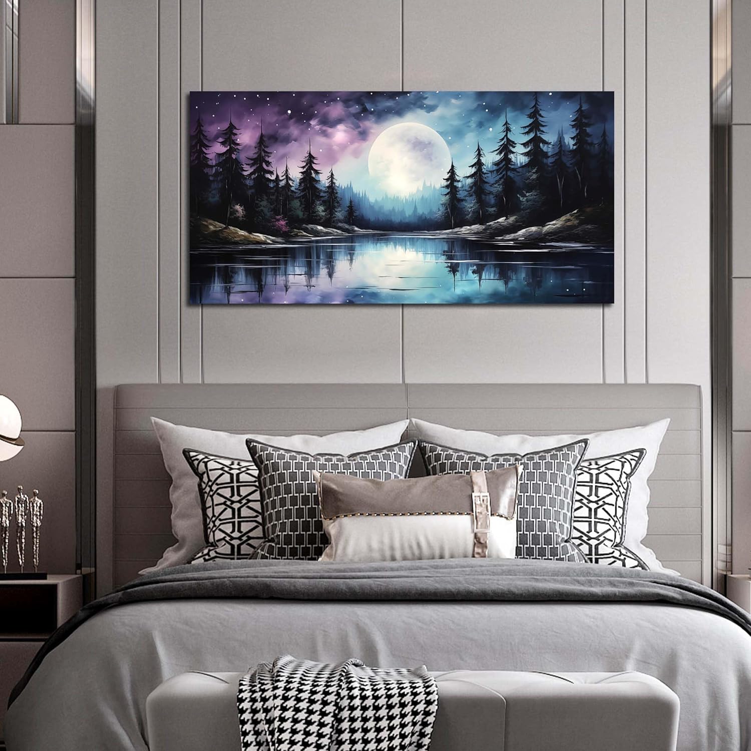 AOZEMI Large Forest Wall Art Landscape Canvas Moon Pictures for Living Room Office Bedroom Modern Nature Wall Decor 24x48