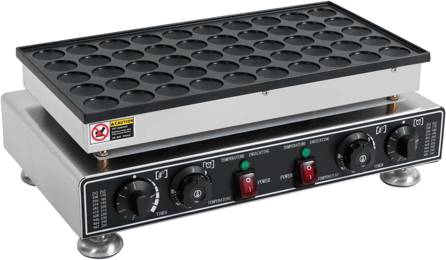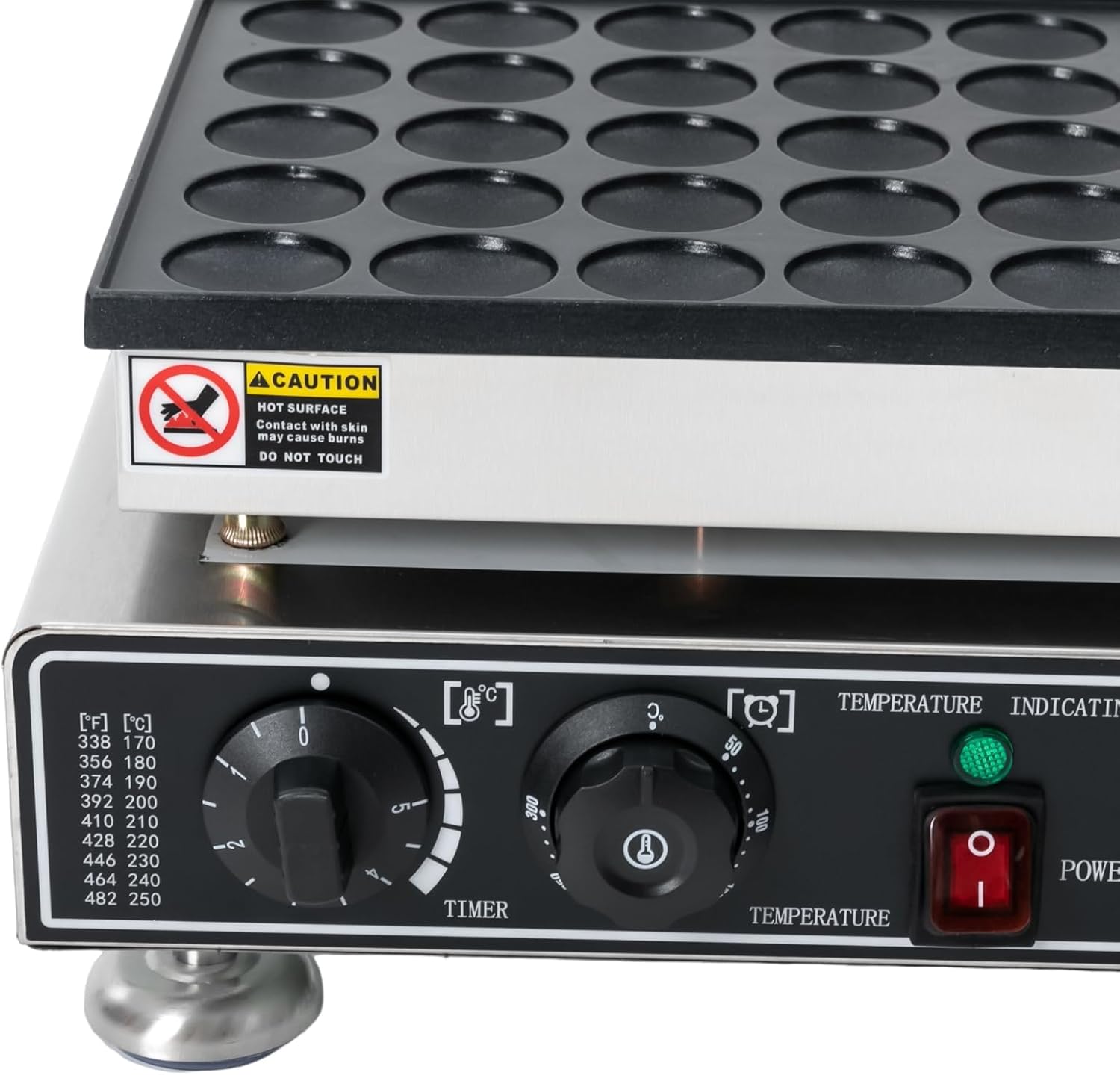 • Adjustable and Intelligent: The timer (1-5min) and temperature adjustment knob (122-572℉) can meet a wide range of production needs. Two separate control zones bring flexibility for muffin making and commercial use.