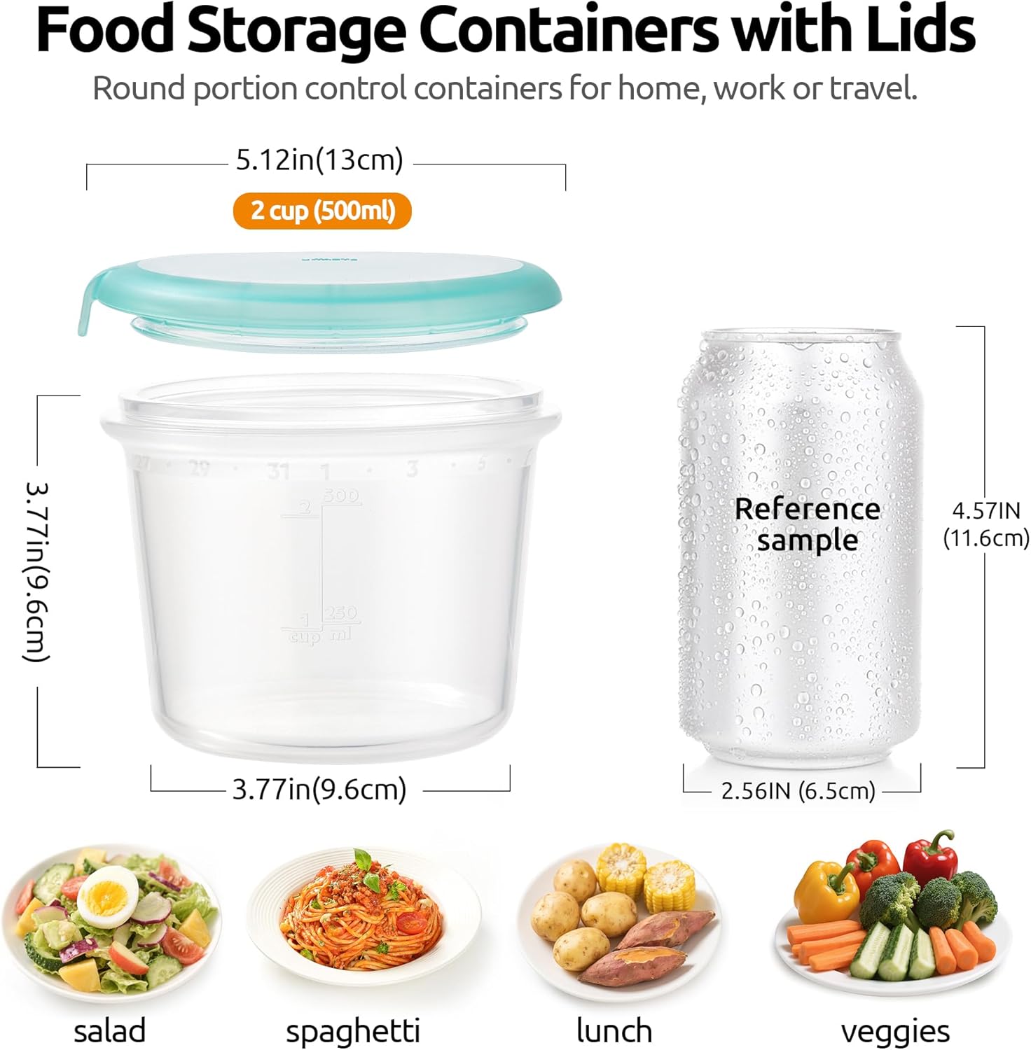 • [Multi-Size Versatility] U-Taste food containers available in 4 size options: 2oz (1/4cup—60ml); 4oz (1/2cup—125ml); 1 cup (250ml); and 2 cup (500ml). The 2oz mini container is great for dip sauces, condiments, spices, or salad dressings. The 4oz small container fits snacks, nuts, garnishes, hard-boiled eggs, pudding, mayo. 1-cup freezable container for yogurt, fruit, puree, oatmeal, smoothies, muffins. 2-cup clear container for meal prep, leftovers, salad, fruit, veggies, sandwich, spaghetti.