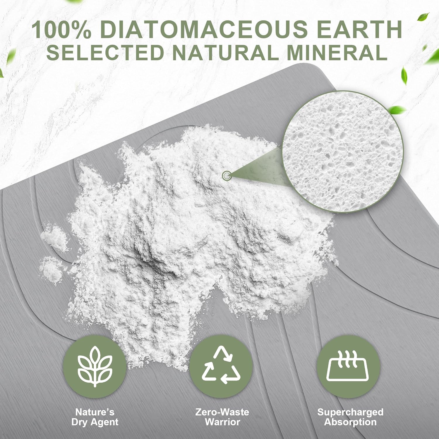 • [NATURAL DIATOMACEOUS EARTH DRYING MAT]:This stone dish drying mat is made of natural diatomaceous earth in the material, which is natural and environmentally friendly, non-toxic and safe. The stone drying mat lasts longer than traditional drying mats and ensures that your kitchen countertops are drier and tidier while in use.