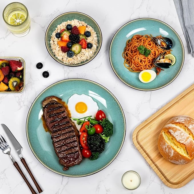 • Premium High-Fired Ceramic: Crafted with 2300℉ kiln-fired technology for superior chip & scratch resistance. Features a glossy, non-porous surface that repels stains and cleans effortlessly, ideal for busy households and holiday feasts. Note: Owing to the reactivity of glazes during the firing process, resulting in subtle variations on the surface of each tableware.