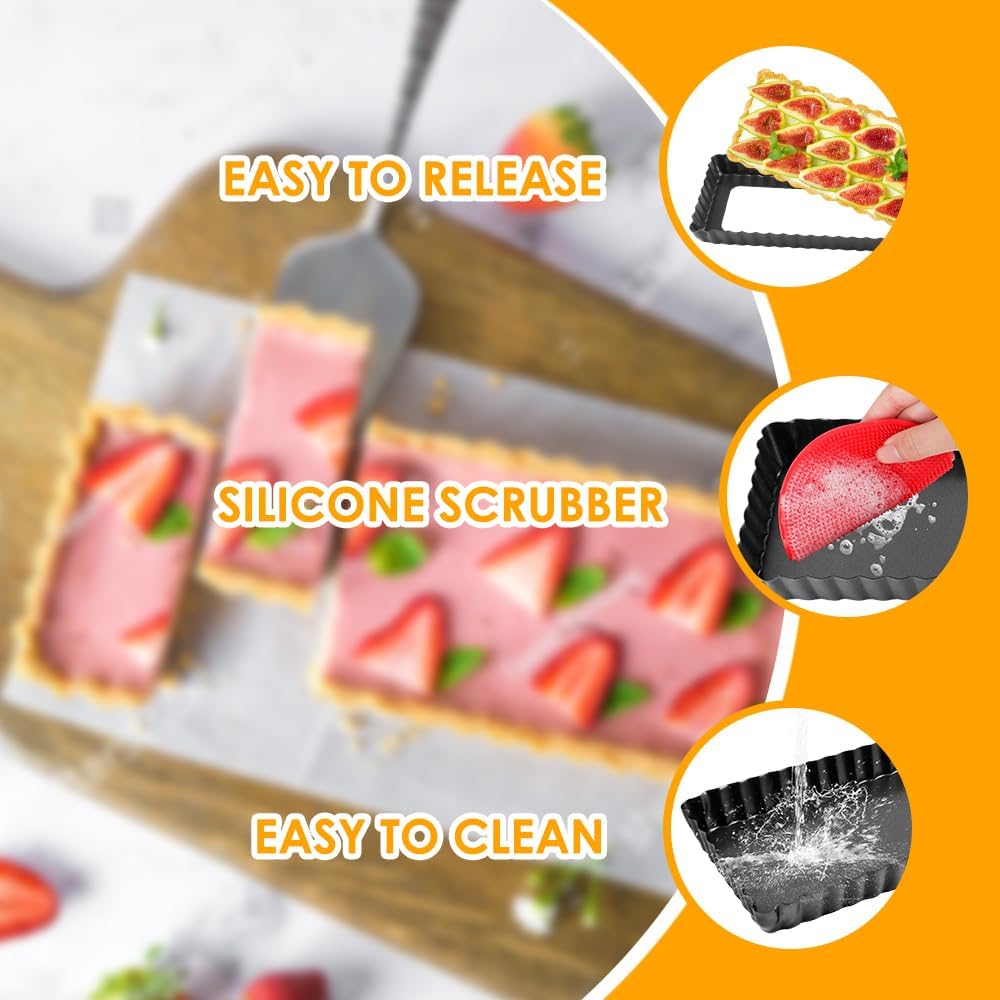• 🧼 Effortless Clean: The non-stick surface paired with a bundled scrubber guarantees zero-residue cleanup. Reuse these durable pie pans endlessly – a hygienic, time-saving essential for busy bakers who value spotless kitchen tools.