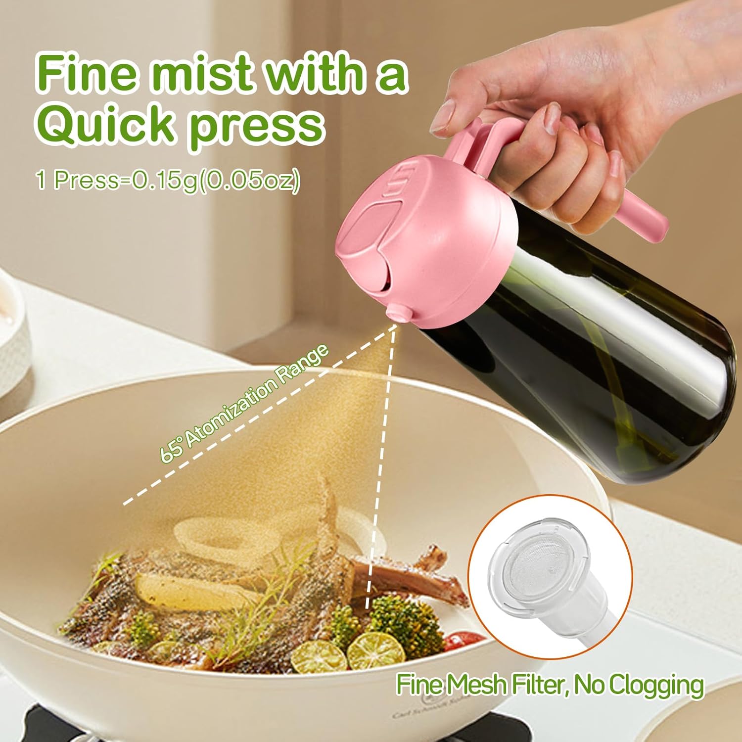YARRAMATE 16oz/470ml Dark Green Oil Sprayer for Cooking with Stickers, Food-grade Premium 2 in 1 Olive Oil Dispenser Bottle for Kitchen Gadgets, Air Fryer, Salad, Frying, BBQ (Pink)