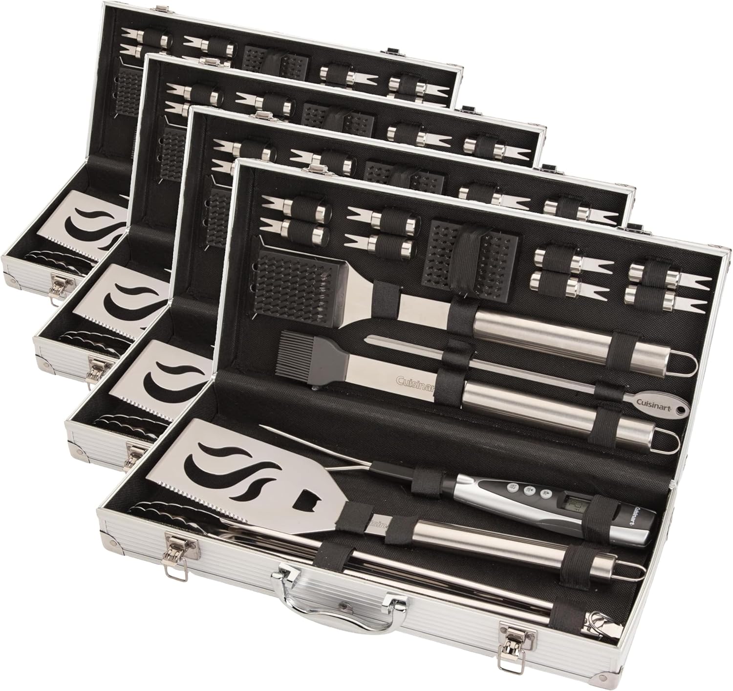 Cuisinart Deluxe Grill Tool Set, 20-Piece BBQ Kit with Aluminum Case and Digital Temperature Fork, Spatula, Tongs, Grill Accessories and Utensils, Grilling Set for Cookout (Pack of 4)