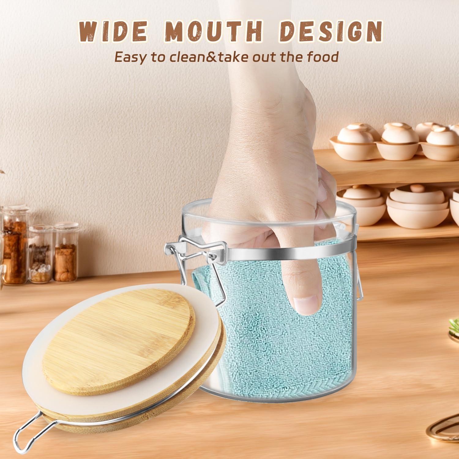 • Wide Opening:the jar have a large opening,you can easily reach in to scoop out the food or use a spoon to get it,and the inside is easy to clean,Please clean these airtight glass jars by hand only with mild soap and warm water.