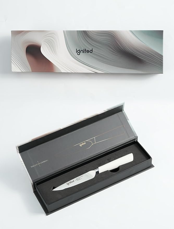 3.5 Inch Paring Knife – German Stainless Steel, Ergonomic Ivory White Handle, Minimalist Small Kitchen Knife for Peeling & Cutting, Ideal Gift for Chefs, Cooks