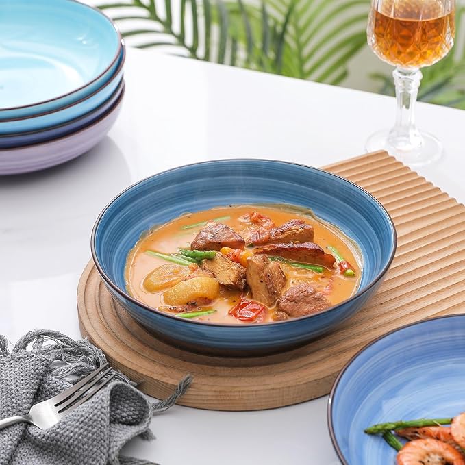 • DISHES SET FOR 6 - This 24 pieces plates set is specially designed and combined for 6 people, including 6 pieces each of 10" Dinner plates, 8" Salad plates, 24 oz Cereal bowls, 26 oz Pasta Bowls. This dinnerware set are versatile for pasta, salads, steak, cereal, soups, desserts, etc. Great for home, restaurant, and hotel use.