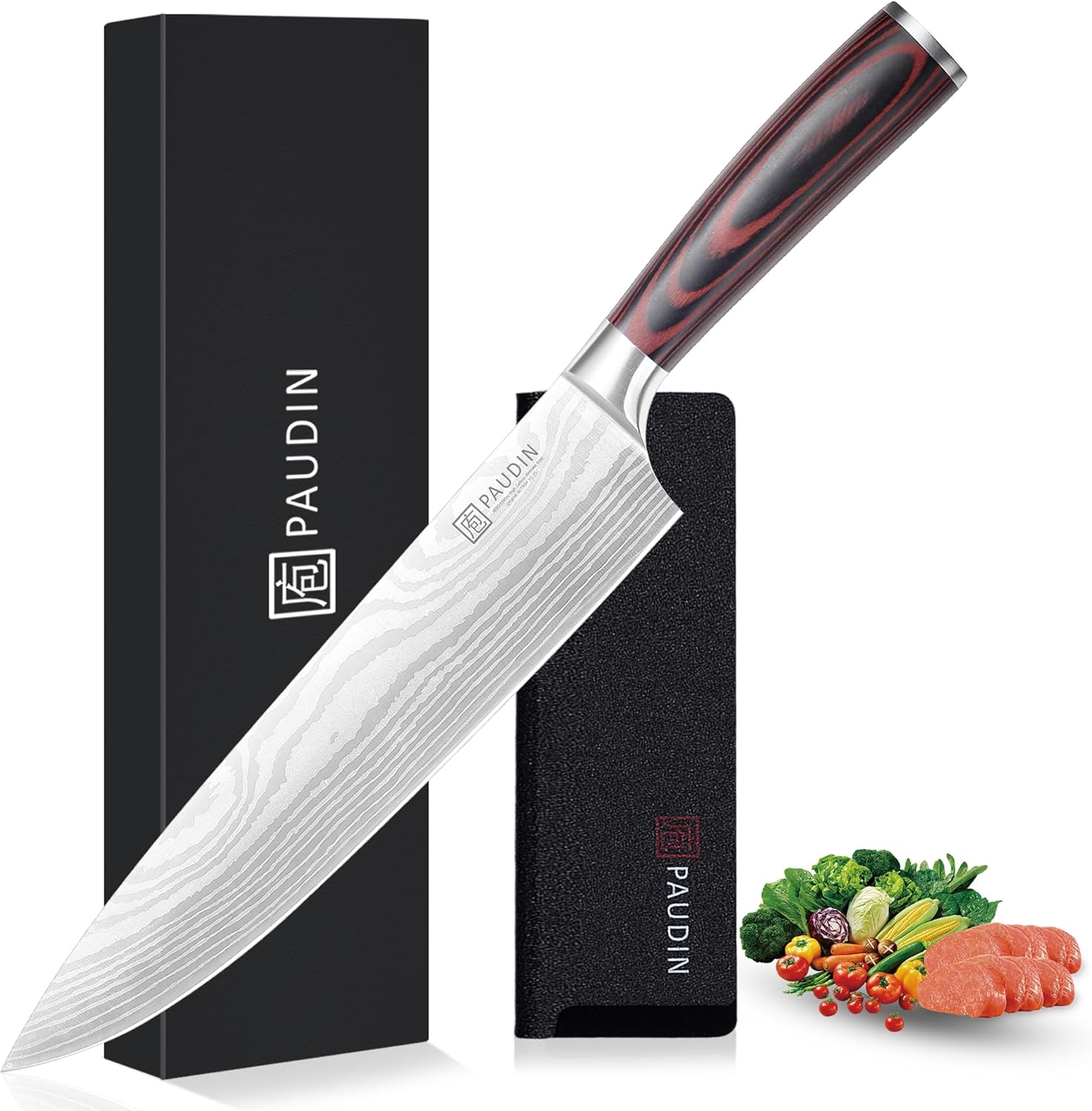 PAUDIN Chef Knife, 10 Inch Meat Knife, Ultra Sharp Brisket Slicing Knives, High Carbon Stainless Steel Kitchen Knife with Ergonomic Handle for BBQ, Roast, Meats and Vegetables