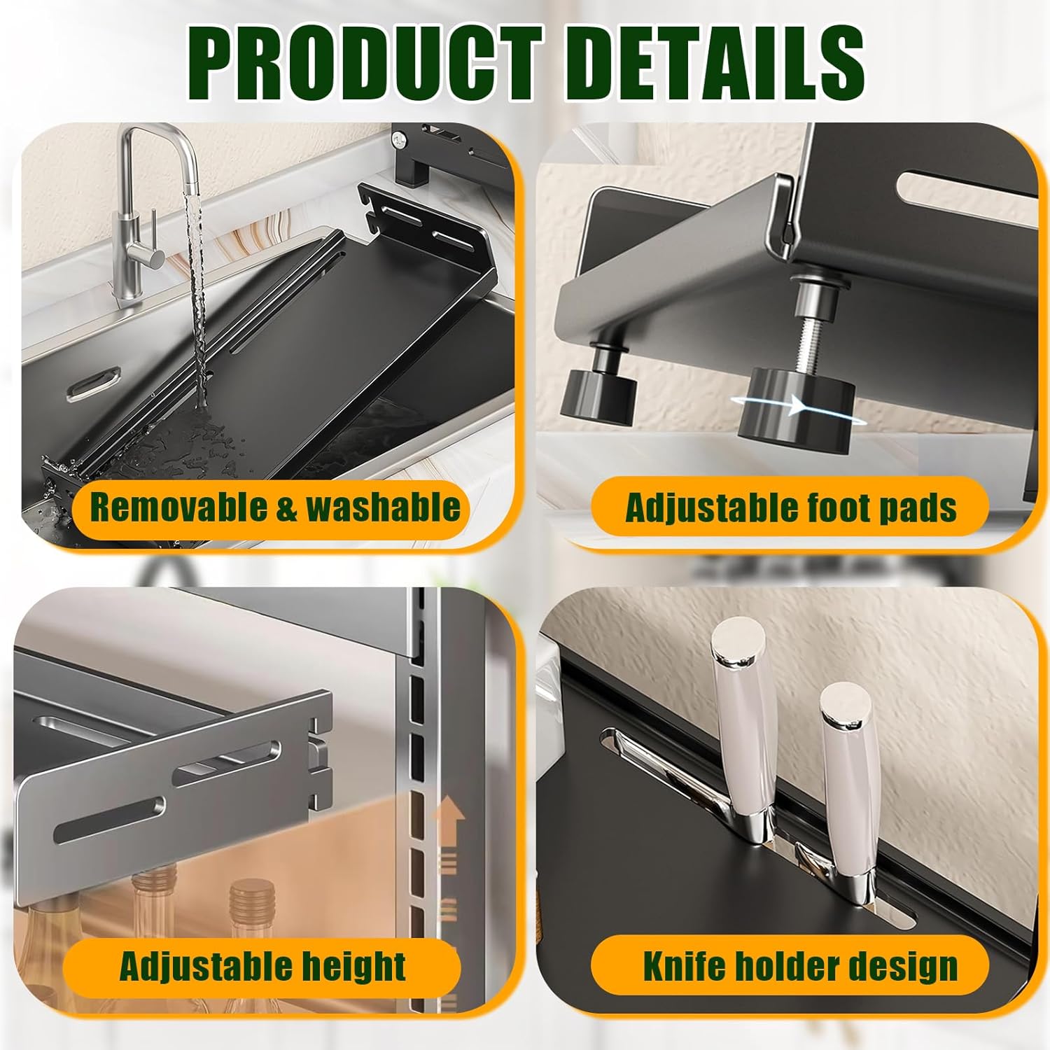 • 🍄【Beautiful and Elegant】 The kitchen organizers and storage overall appearance is simple and modern, which not only meets the practicality but also enhances the overall aesthetics of the home environment. It can also embellish your cooking area